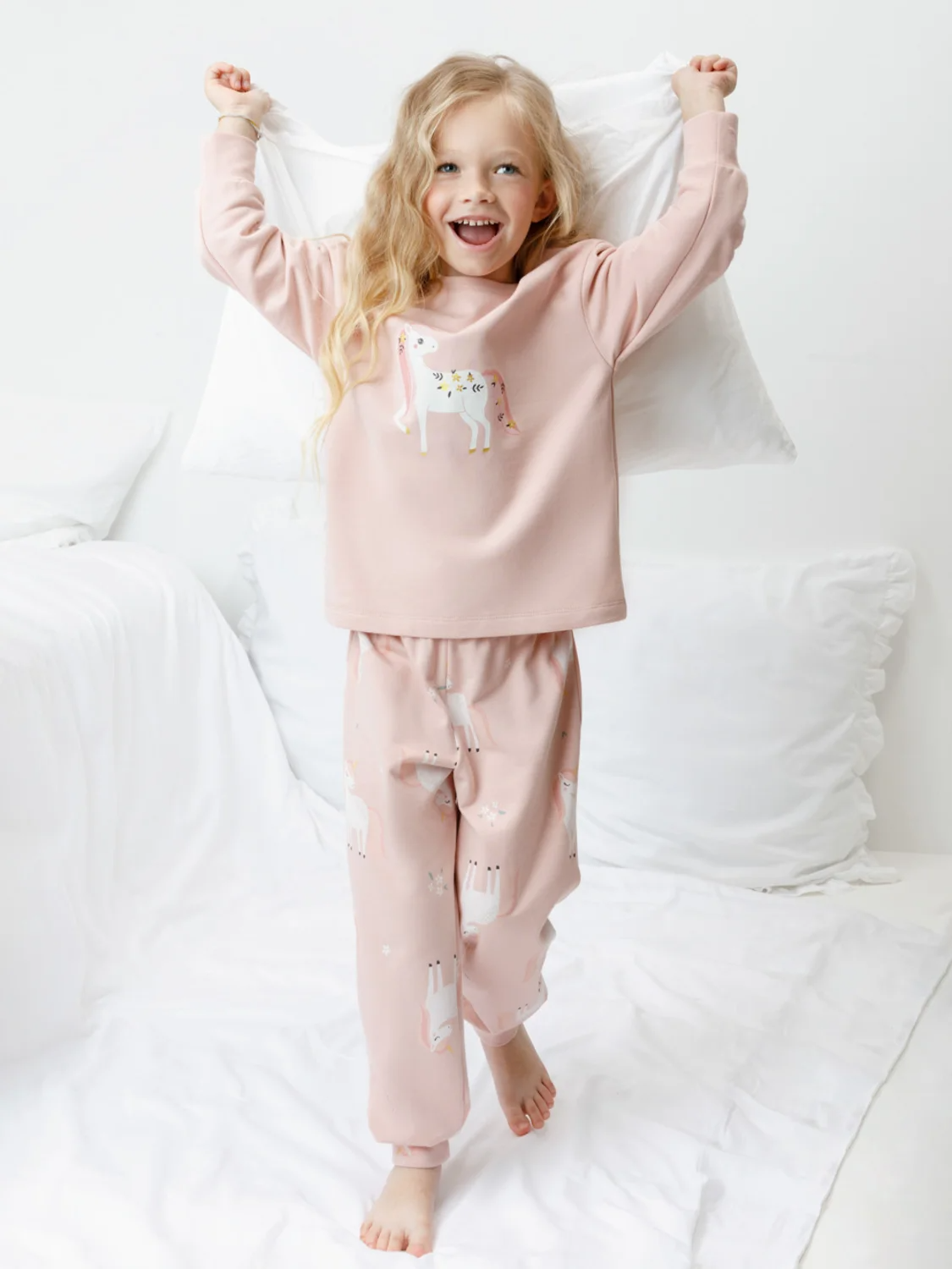 Тёплая пижама с начёсом из натурального хлопка. Джемпер с длинными спущенными рукавами и брюки с эластичной резинкой в поясе. Мягкие манжеты на рукавах и по низу брюк. Оригинальные набивка и принт выполнены из стойких гипоаллергенных текстильных красителей. Изделие сохраняет цвет и форму после многократных стирок. Все трикотажные полотна производятся в соответствии с нормами швейцарского сертификата ЭкоТекс.
