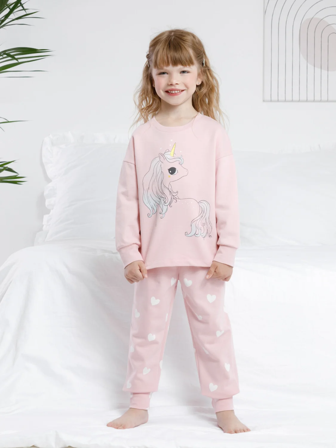 Тёплая пижама с начёсом из натурального хлопка. Джемпер с длинными спущенными рукавами и брюки с эластичной резинкой в поясе. Мягкие манжеты на рукавах и по низу брюк. Оригинальные набивка и принт выполнены из стойких гипоаллергенных текстильных красителей. Изделие сохраняет цвет и форму после многократных стирок. Все трикотажные полотна производятся в соответствии с нормами швейцарского сертификата ЭкоТекс.