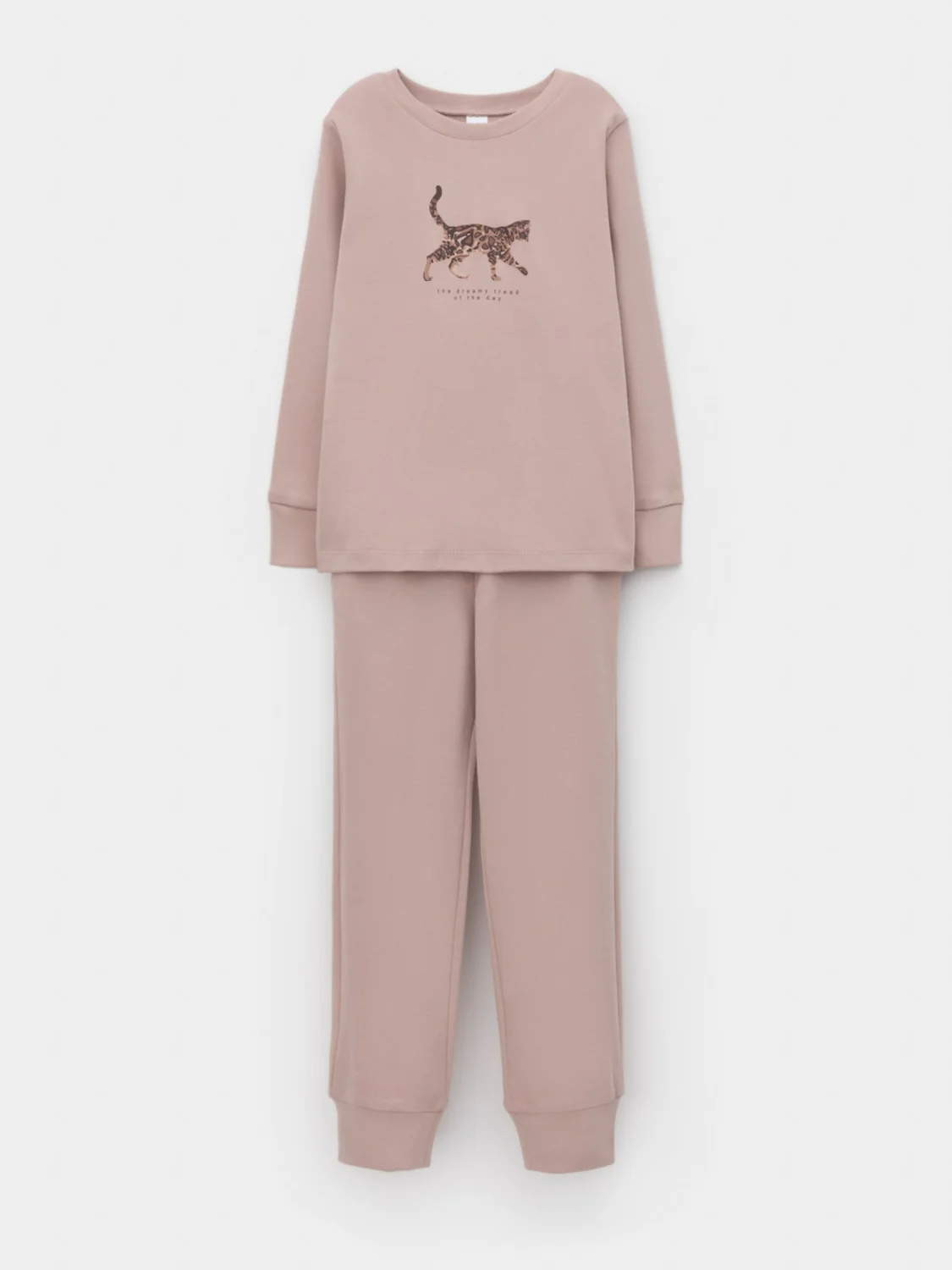 Трикотажная пижама из натурального хлопка. Джемпер с длинными втачными рукавами и брюки с эластичной резинкой в поясе. Мягкие манжеты на рукавах и по низу брюк. Оригинальный принт выполнен из стойких текстильных гипоаллергенных красителей. Изделие сохраняет цвет и форму после многократных стирок. Все трикотажные полотна производятся в соответствии с нормами швейцарского сертификата ЭкоТекс.