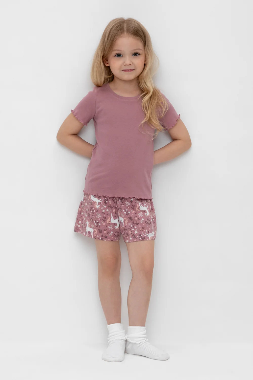 Трикотажная пижама из натурального хлопка. У футболки рукава и низ изделия обработаны микрооверлоком. У шорт в комплекте мягкий, эластичный пояс на резинке. Оригинальная набивка выполнена из стойких, гипоаллергенных текстильных красителей. Комплект сохраняет цвет и форму после многократных стирок. Все трикотажные полотна производятся в соответсвии с нормами Швейцарского сертификата ЭкоТекс.