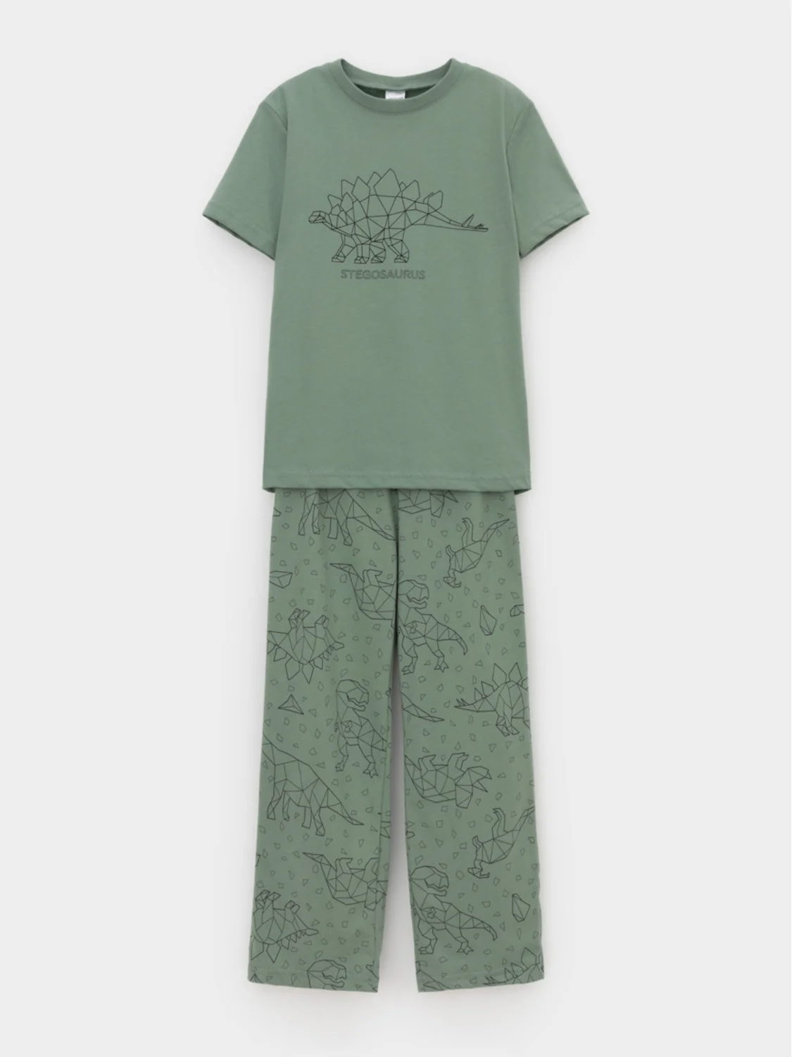 Трикотажная пижама из натурального хлопка. Футболка с короткими рукавами с принтом. У брюк эластичный пояс на резинке. Оригинальные принт и набивка выполнены из стойких, гипоаллергенных текстильных красителей. Пижама сохраняет цвет и форму после многократных стирок. Все трикотажные полотна производятся в соответсвии с нормами Швейцарского сертификата ЭкоТекс.
