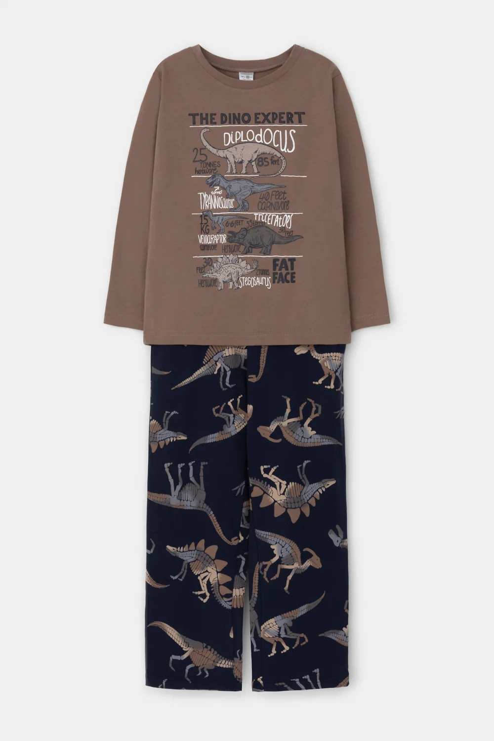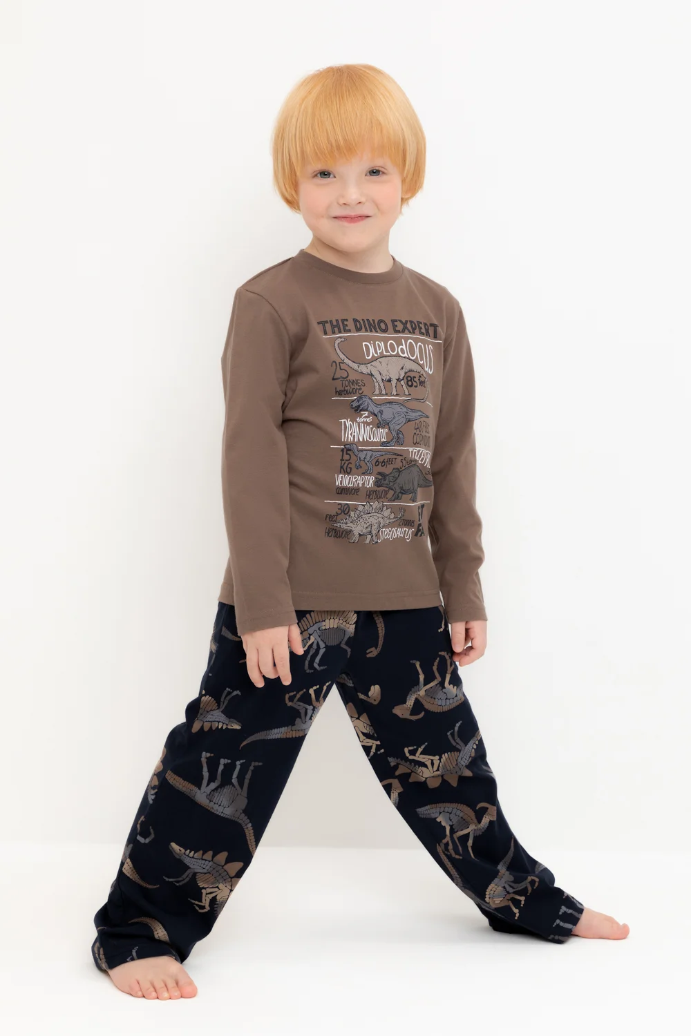 Трикотажная пижама из натурального хлопка. Джемпер с длинными втачными рукавами и прямые брюки с эластичной резинкой в поясе. Оригинальные набивка и принт выполнены из стойких гипоаллергенных текстильных красителей. Изделие сохраняет цвет и форму после многократных стирок. Все трикотажные полотна производятся в соответсвии с нормами швейцарского сертификата ЭкоТекс.