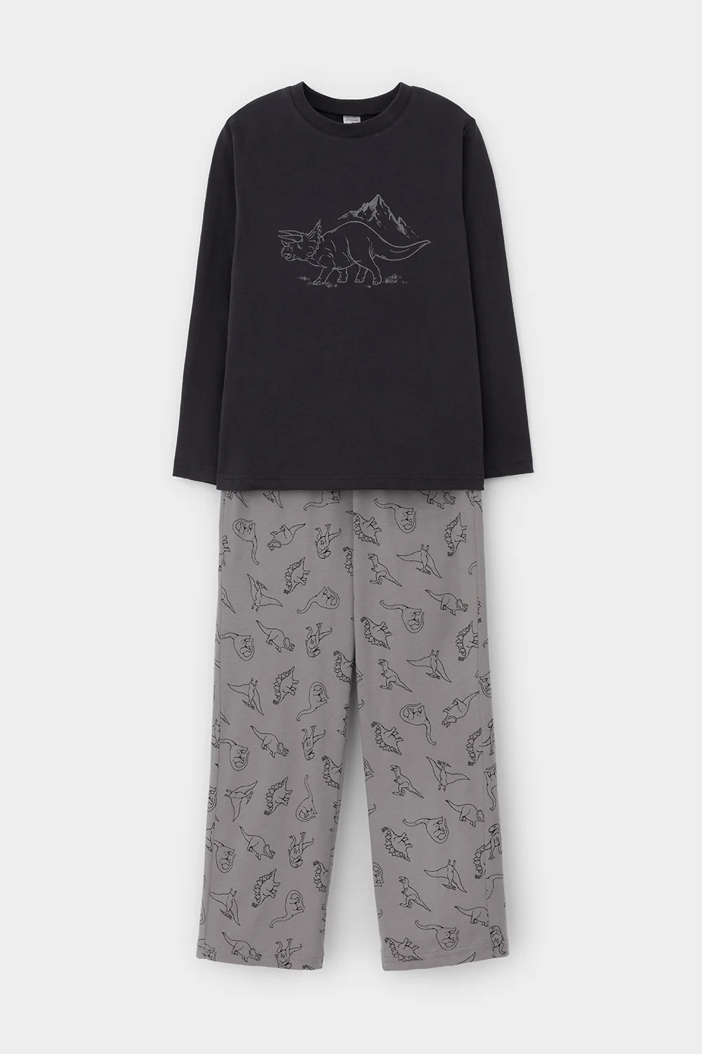 Трикотажная пижама из натурального хлопка. Джемпер с длинными рукавами с принтом. У брюк эластичный пояс на резинке. Оригинальные принт и набивка выполнены из стойких, гипоаллергенных текстильных красителей. Пижама сохраняет цвет и форму после многократных стирок. Все трикотажные полотна производятся в соответсвии с нормами Швейцарского сертификата ЭкоТекс.