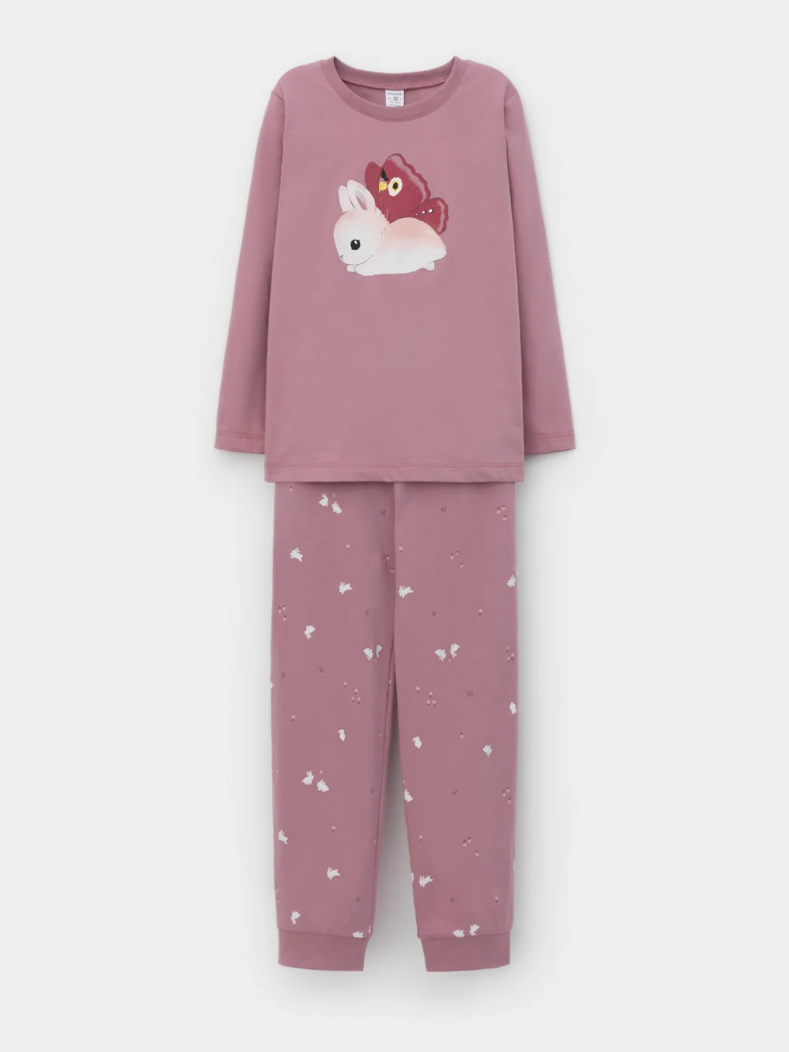 Пижама для девочки из натурального хлопка. Джемпер с длинными втачными рукавами и брюки с эластичной резинкой в поясе. Мягкие манжеты по низу брюк сделаны из материала в рубчик. Оригинальная набивка и принт выполнены из стойких текстильных гипоаллергенных красителей. Изделие сохраняет цвет и форму после многократных стирок. Все трикотажные полотна производятся в соответствии с нормами швейцарского сертификата ЭкоТекс.