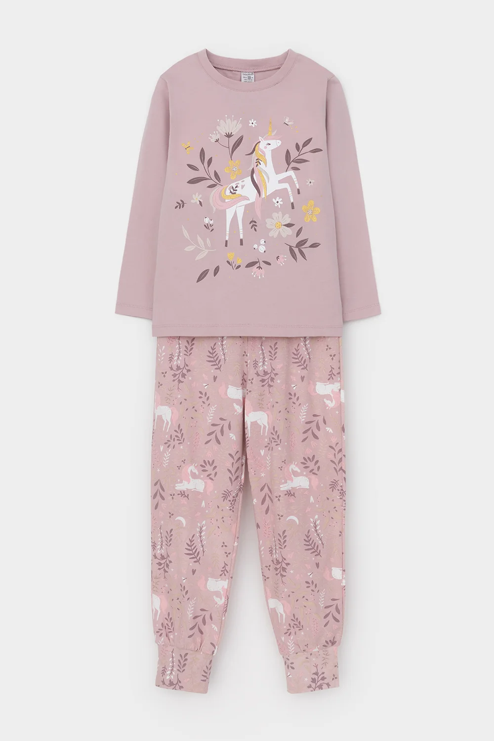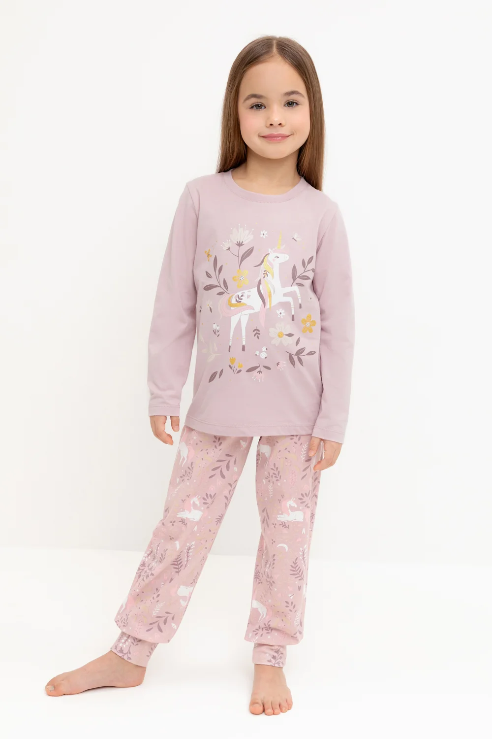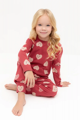 Трикотажная пижама из натурального хлопка. Джемпер с длинными втачными рукавами и брюки с эластичной резинкой в поясе. Мягкие манжеты по низу брюк. Оригинальные набивка и принт выполнены из стойких гипоаллергенных текстильных гипоаллергенных красителей. Изделие сохраняет цвет и форму после многократных стирок. Все трикотажные полотна производятся в соответсвии с нормами швейцарского сертификата ЭкоТекс.