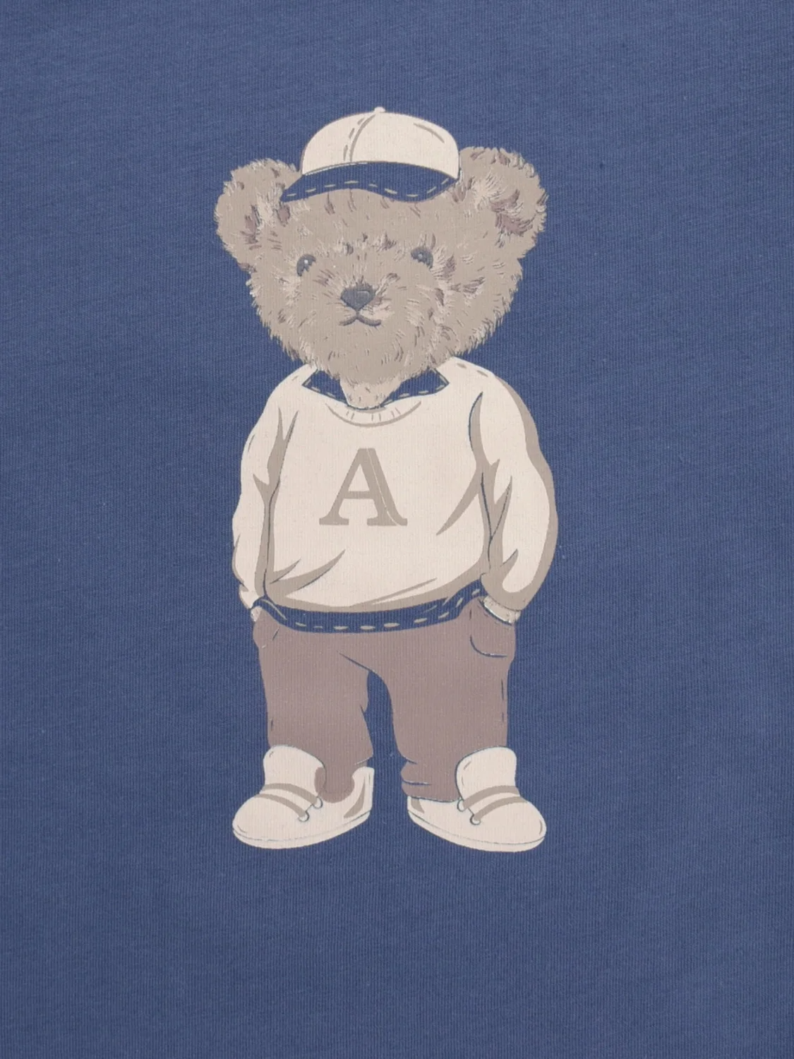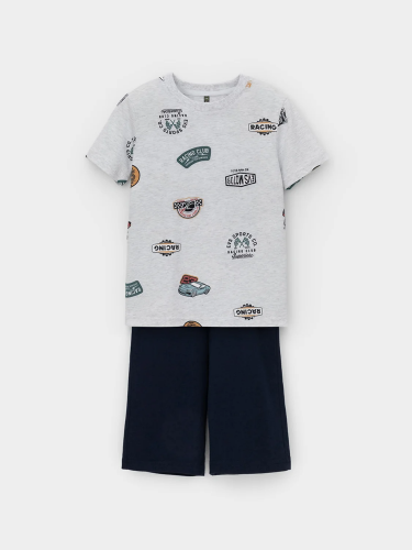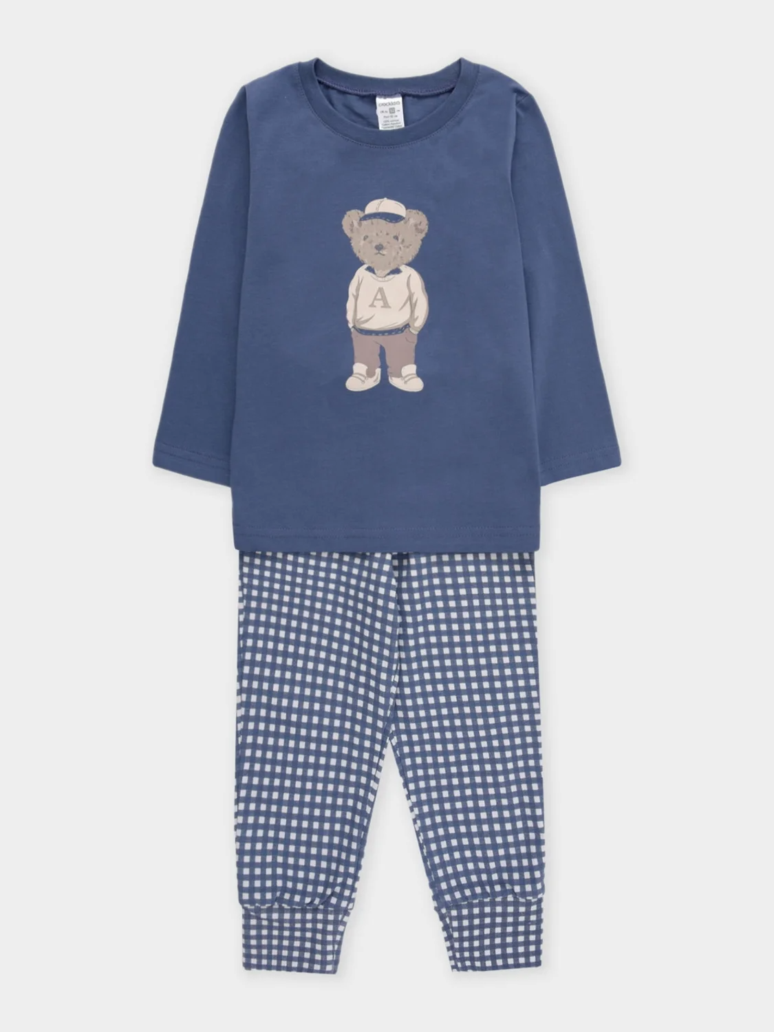 Пижама для мальчика из натурального хлопка. Джемпер с длинными втачными рукавами и брюки с эластичной резинкой в поясе. Мягкие манжеты по низу брюк сделаны из материала в рубчик. Оригинальная набивка и принт выполнены из стойких текстильных гипоаллергенных красителей. Изделие сохраняет цвет и форму после многократных стирок. Все трикотажные полотна производятся в соответствии с нормами швейцарского сертификата ЭкоТекс.