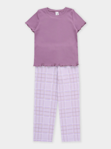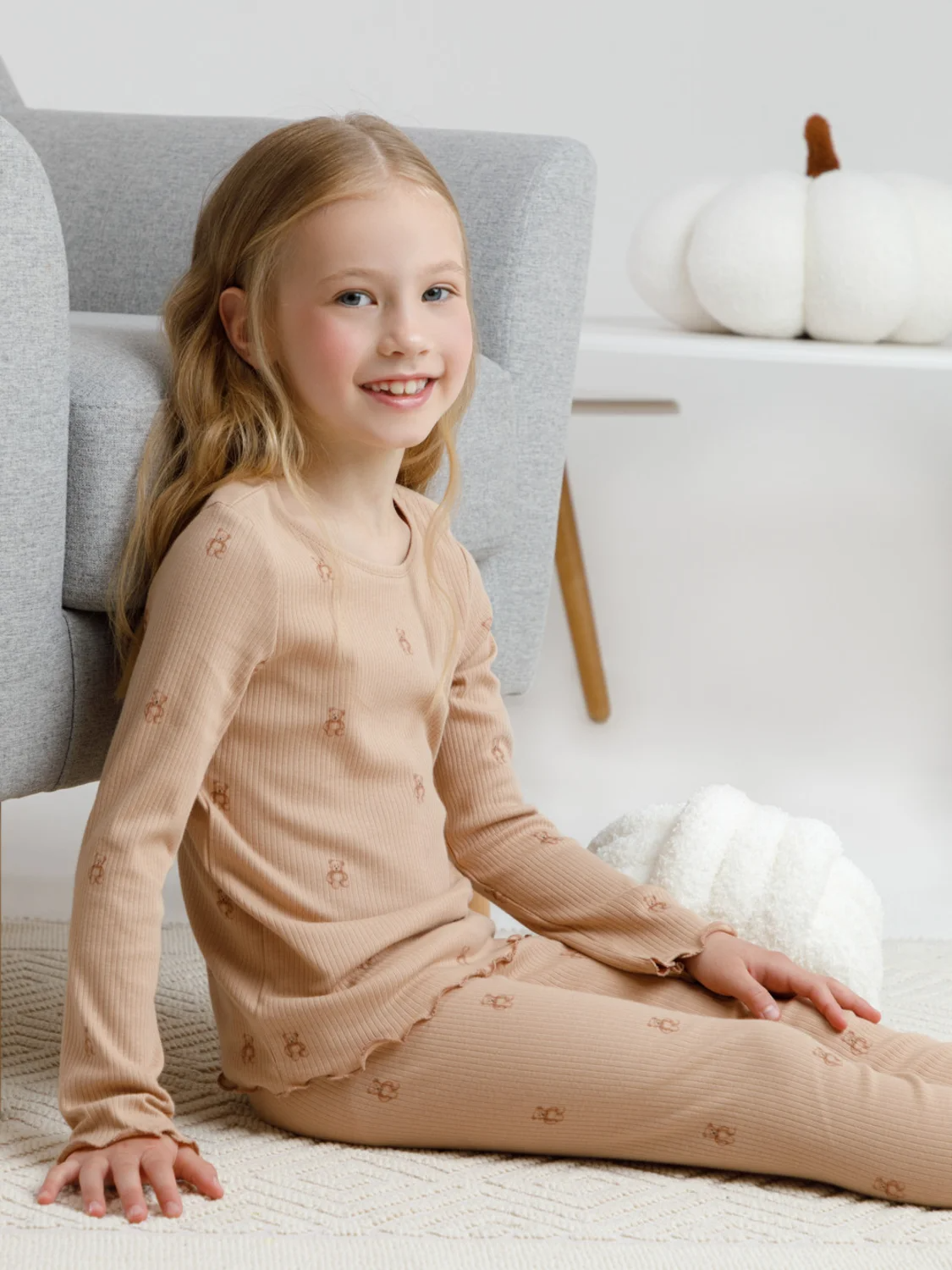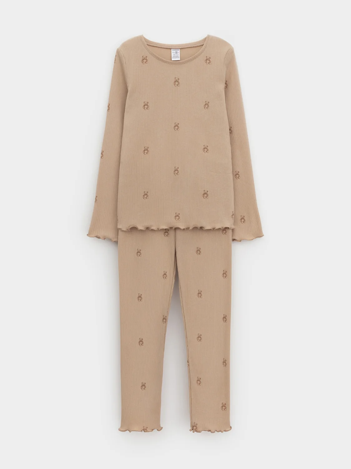 Трикотажная пижама в рубчик из натурального хлопка. Джемпер с длинными втачными рукавами и лосины с эластичной резинкой в поясе. Оригинальная набивка выполнена из стойких текстильных гипоаллергенных красителей. Изделие сохраняет цвет и форму после многократных стирок. Все трикотажные полотна производятся в соответствии с нормами швейцарского сертификата ЭкоТекс.