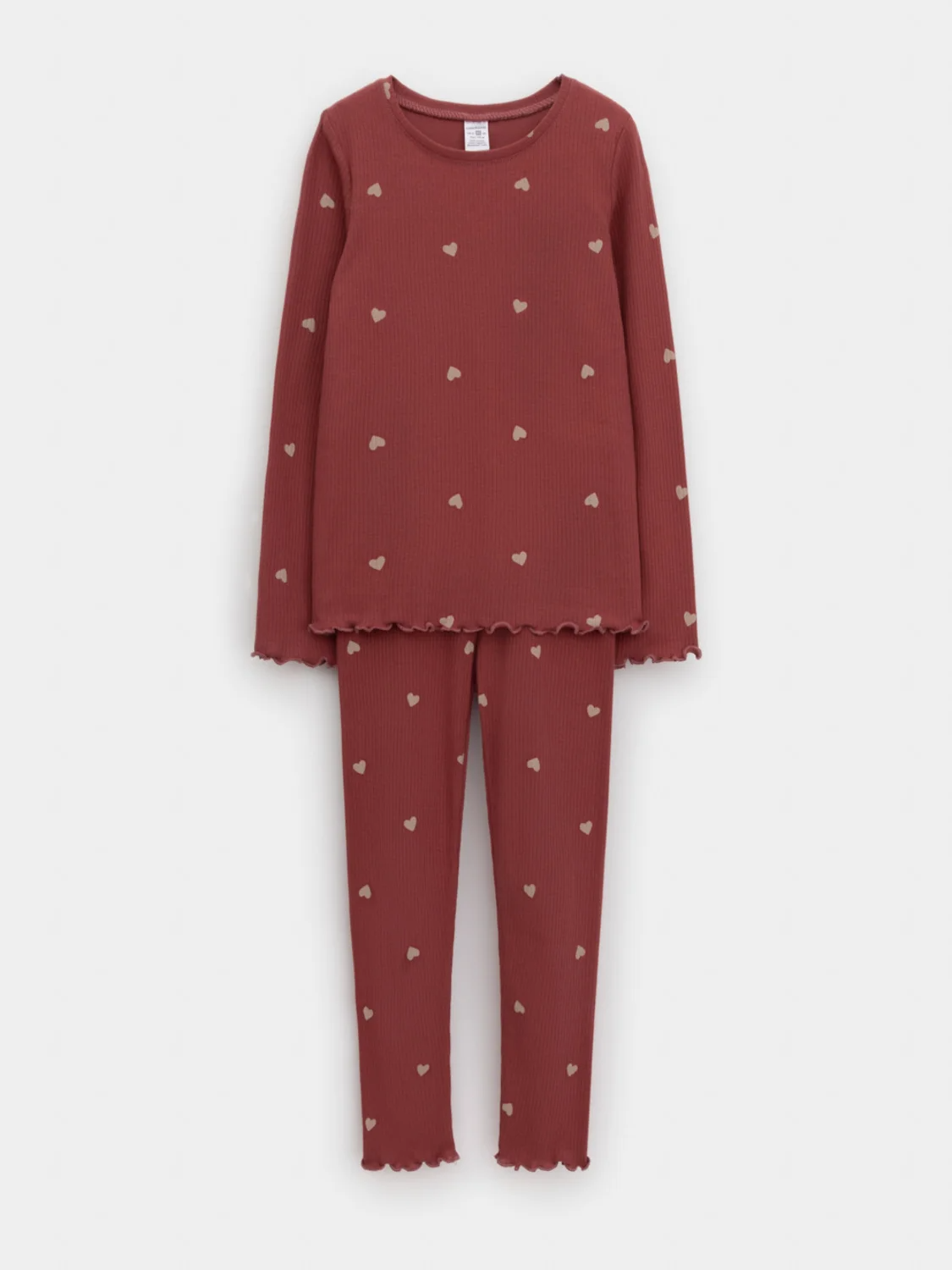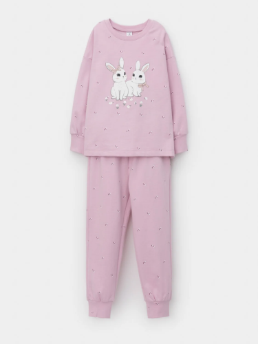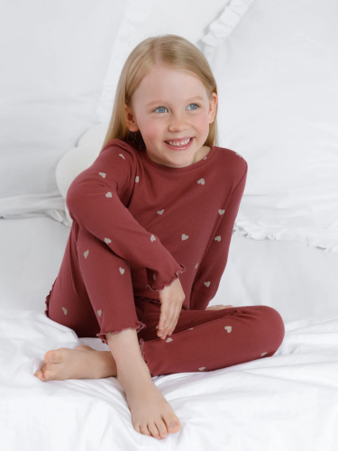 Трикотажная пижама в рубчик из натурального хлопка. Джемпер с длинными втачными рукавами и лосины с эластичной резинкой в поясе. Оригинальная набивка выполнена из стойких текстильных гипоаллергенных красителей. Изделие сохраняет цвет и форму после многократных стирок. Все трикотажные полотна производятся в соответствии с нормами швейцарского сертификата ЭкоТекс.