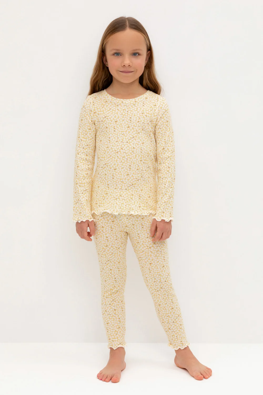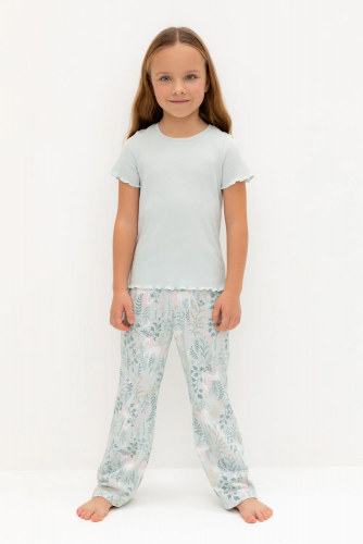Трикотажная пижама в рубчик из натурального хлопка. Джемпер с длинными втачными рукавами и лосины с эластичной резинкой в поясе. Оригинальная набивка выполнена из стойких текстильных гипоаллергенных красителей. Изделие сохраняет цвет и форму после многократных стирок. Все трикотажные полотна производятся в соответсвии с нормами швейцарского сертификата ЭкоТекс.