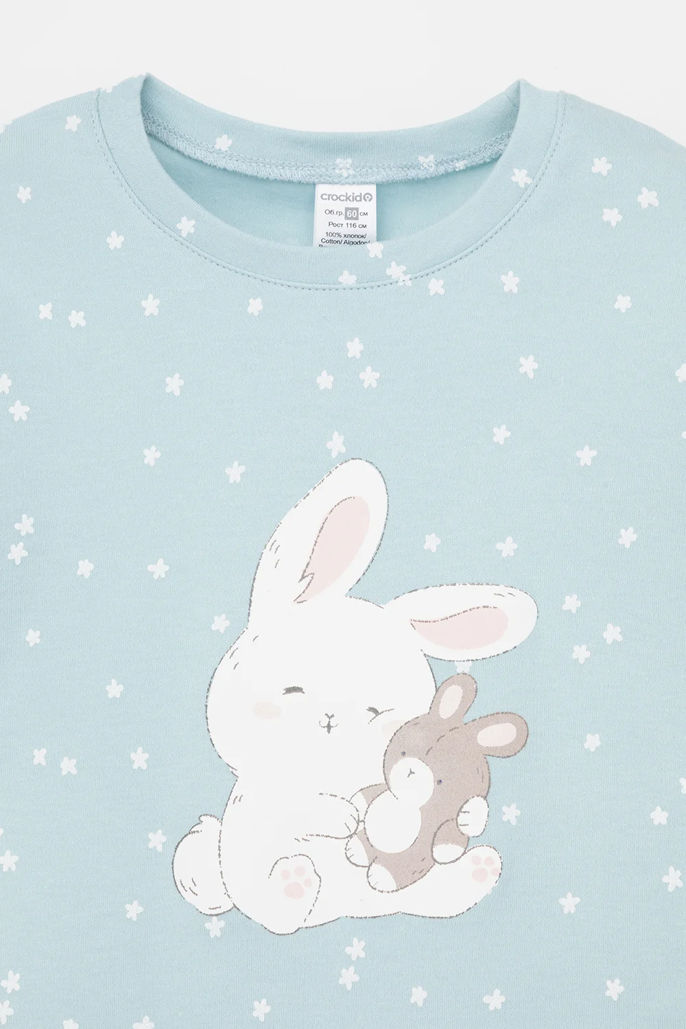 CROCKID Пижама К 1621 голубой, цветочные снежинки