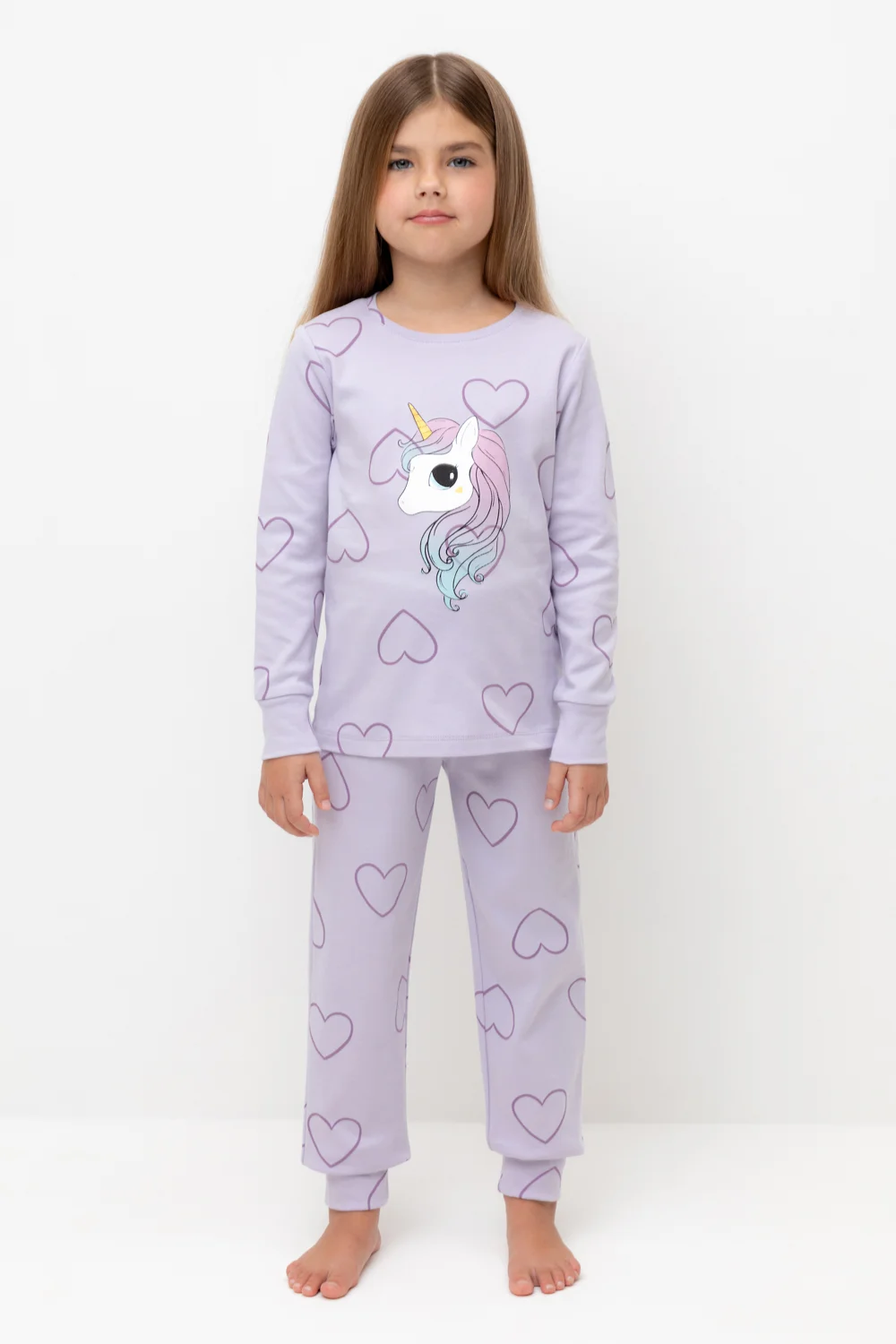 Трикотажная пижама из натурального хлопка. Джемпер с длинными втачными рукавами и брюки с эластичной резинкой в поясе. Мягкие манжеты на рукавах и по низу брюк. Оригинальная набивка и принт выполнены из стойких текстильных красителей. Изделие сохраняет цвет и форму после многократных стирок. Все трикотажные полотна производятся в соответсвии с нормами швейцарского сертификата ЭкоТекс.