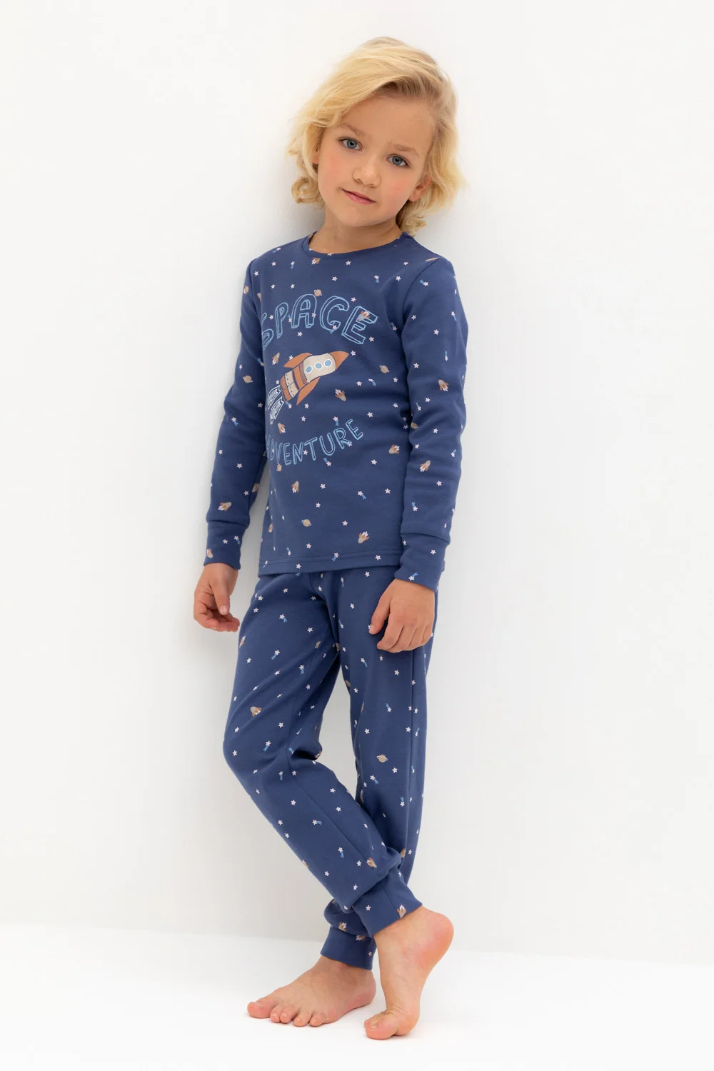 Трикотажная пижама из натурального хлопка. Джемпер с длинными втачными рукавами и брюки с эластичной резинкой в поясе. Мягкие манжеты на рукавах и по низу брюк. Оригинальная набивка и принт выполнены из стойких текстильных гипоаллергенных красителей. Изделие сохраняет цвет и форму после многократных стирок. Все трикотажные полотна производятся в соответсвии с нормами швейцарского сертификата ЭкоТекс.