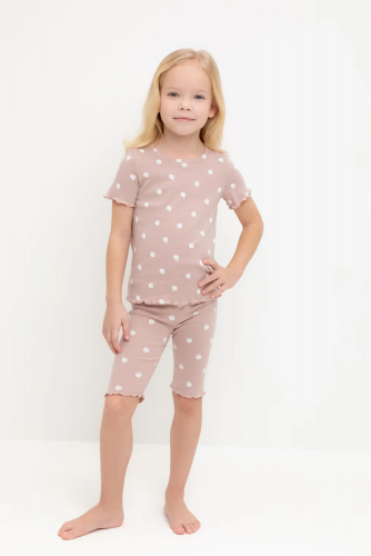 Трикотажная пижама в рубчик из натурального хлопка. Футболка с короткими втачными рукавами и шорты с эластичной резинкой в поясе. Оригинальная набивка выполнена из стойких текстильных красителей. Изделие сохраняет цвет и форму после многократных стирок. Все трикотажные полотна производятся в соответсвии с нормами швейцарского сертификата ЭкоТекс.
