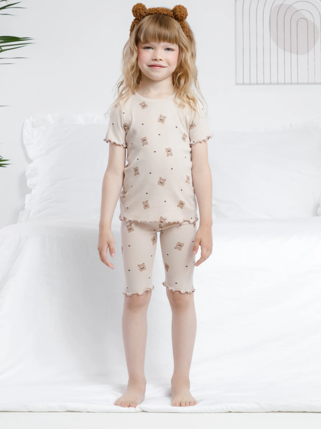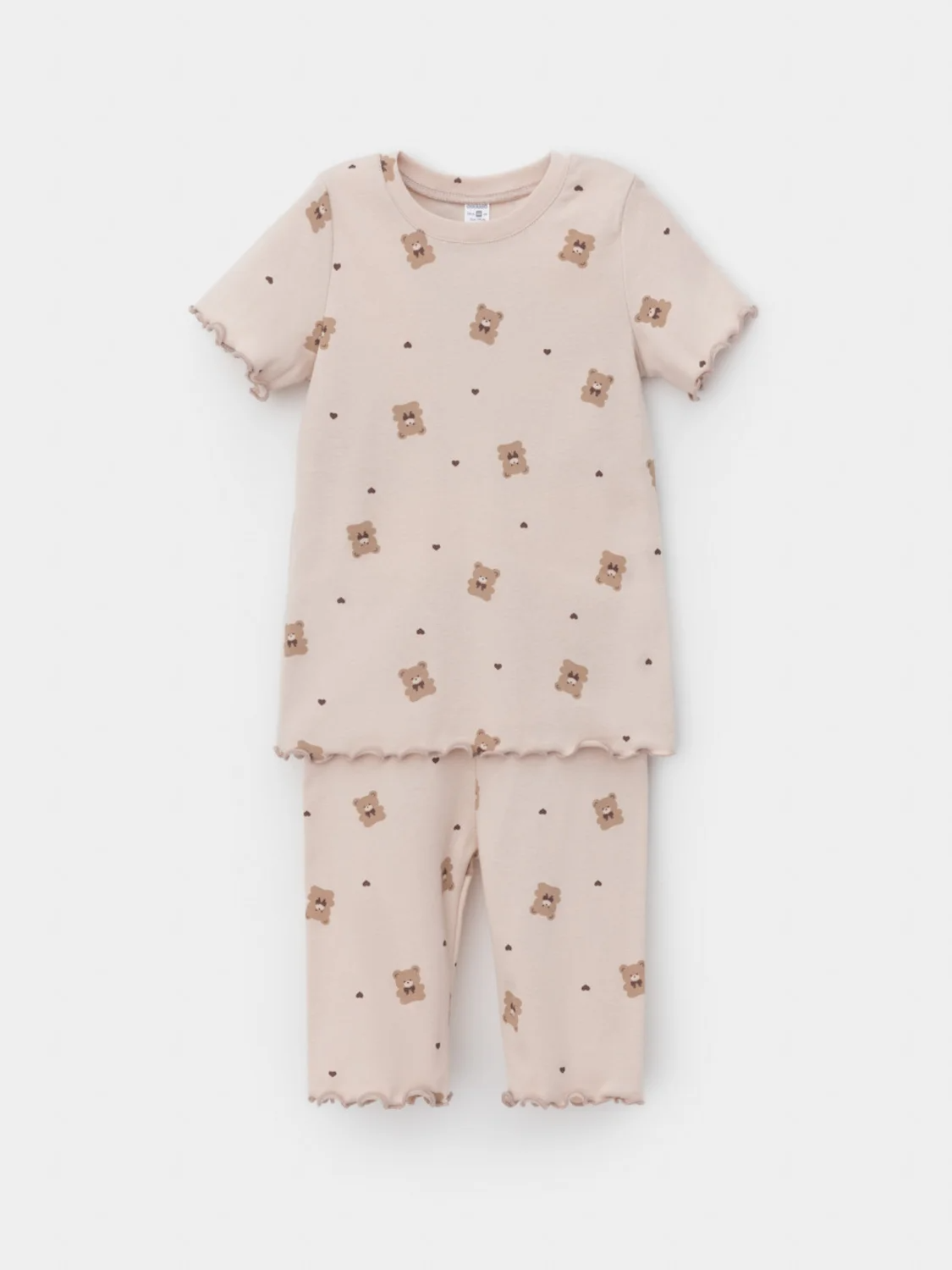 Трикотажная пижама в рубчик из натурального хлопка. Футболка с короткими втачными рукавами и шорты с эластичной резинкой в поясе. Оригинальная набивка выполнена из стойких текстильных гипоаллергенных красителей. Изделие сохраняет цвет и форму после многократных стирок. Все трикотажные полотна производятся в соответствии с нормами швейцарского сертификата ЭкоТекс.