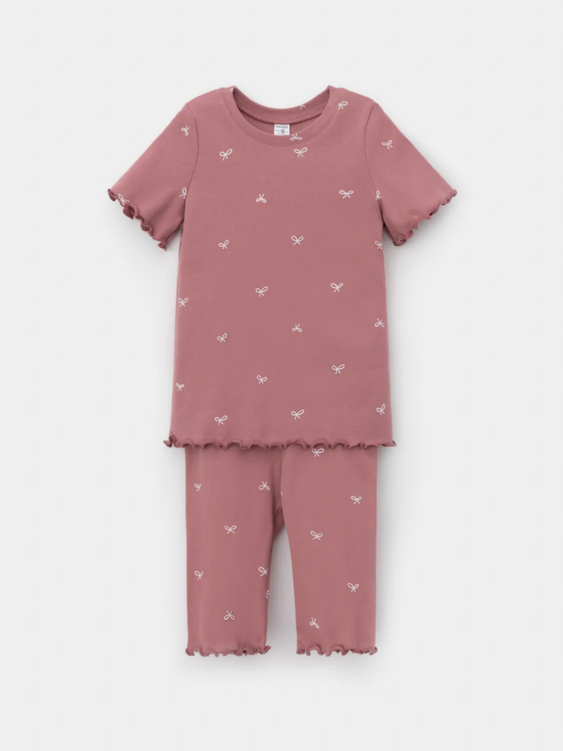 Трикотажная пижама в рубчик из натурального хлопка. Футболка с короткими втачными рукавами и шорты с эластичной резинкой в поясе. Оригинальная набивка выполнена из стойких текстильных гипоаллергенных красителей. Изделие сохраняет цвет и форму после многократных стирок. Все трикотажные полотна производятся в соответствии с нормами швейцарского сертификата ЭкоТекс.