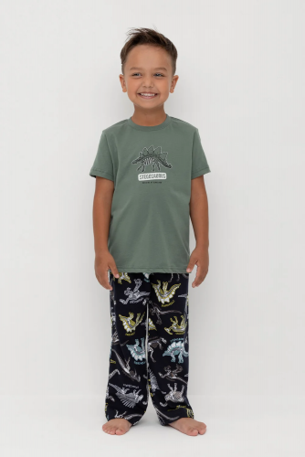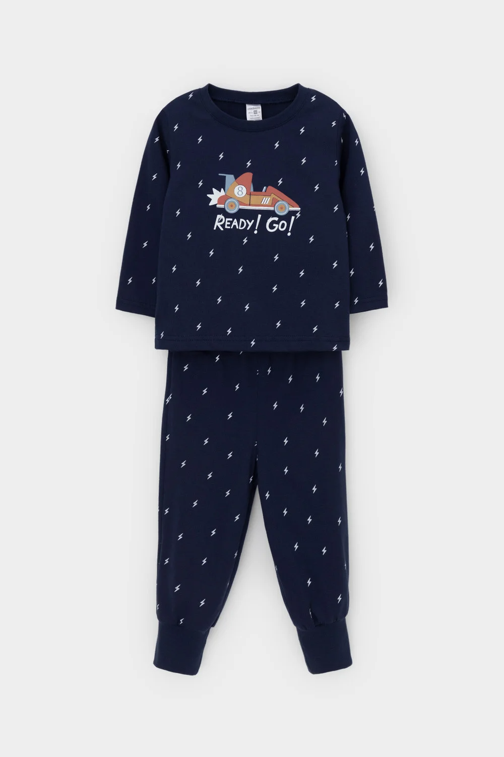 Трикотажная пижама из натурального хлопка. Джемпер с длинными рукавами с эластичными манжетами. У брюк эластичный пояс на резинке. Оригинальная набивка и принт выполнены из стойких, гипоаллергенных текстильных красителей. Пижама сохраняет цвет и форму после многократных стирок. Все трикотажные полотна производятся в соответствии с нормами Швейцарского сертификата ЭкоТекс.