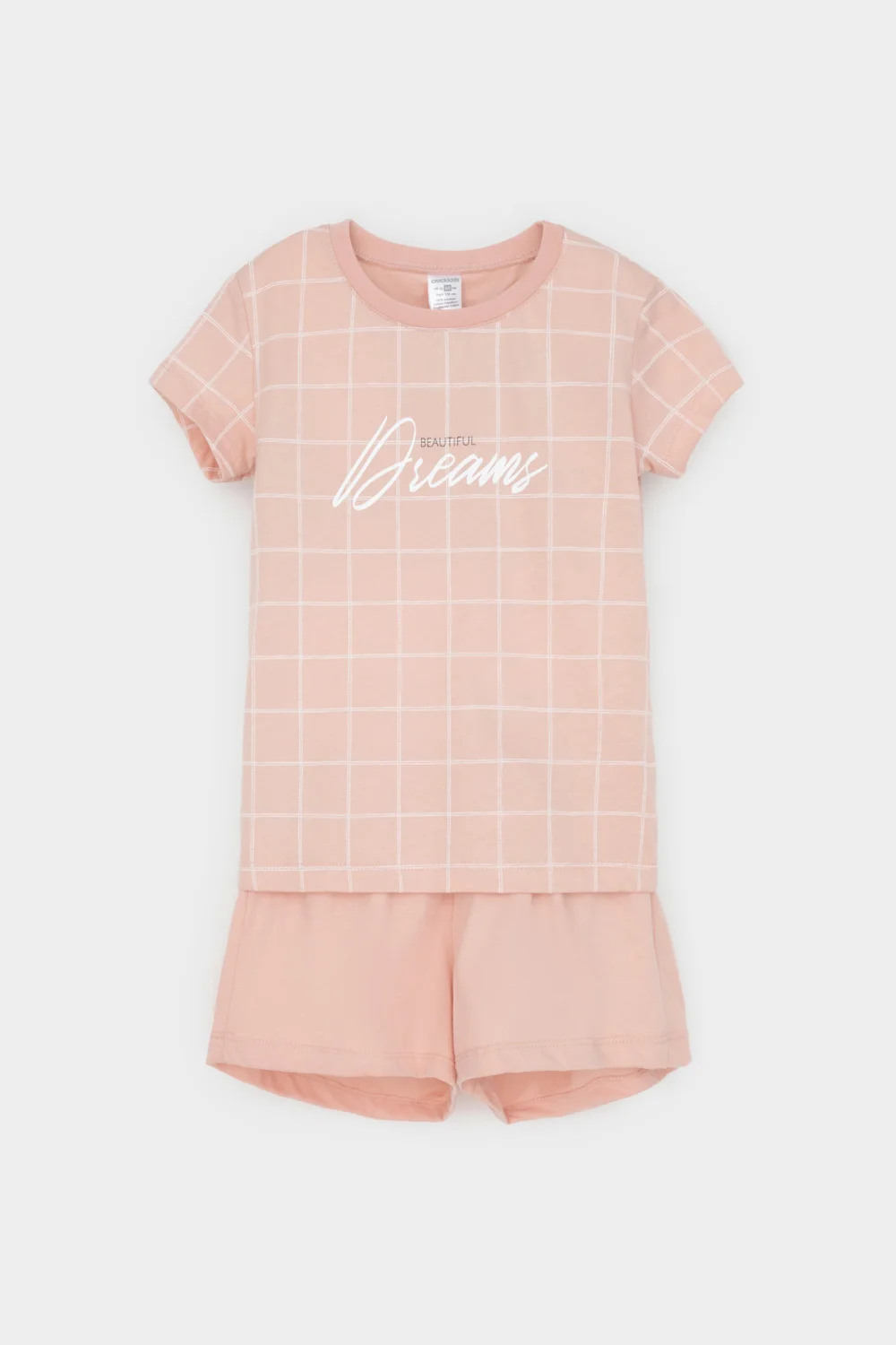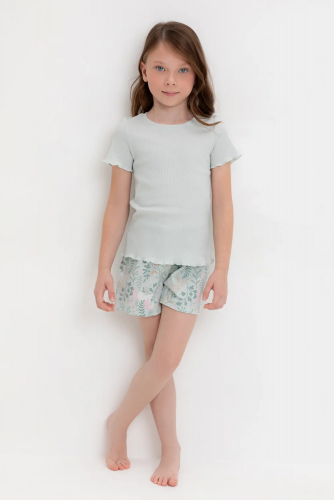 Трикотажная пижама из натурального хлопка. Футболка с принтом и короткими спущенными рукавами. У шорт в комплекте мягкий, эластичный пояс на резинке. Оригинальная набивка выполнена из стойких, гипоаллергенных текстильных красителей. Комплект сохраняет цвет и форму после многократных стирок. Все трикотажные полотна производятся в соответсвии с нормами Швейцарского сертификата ЭкоТекс.