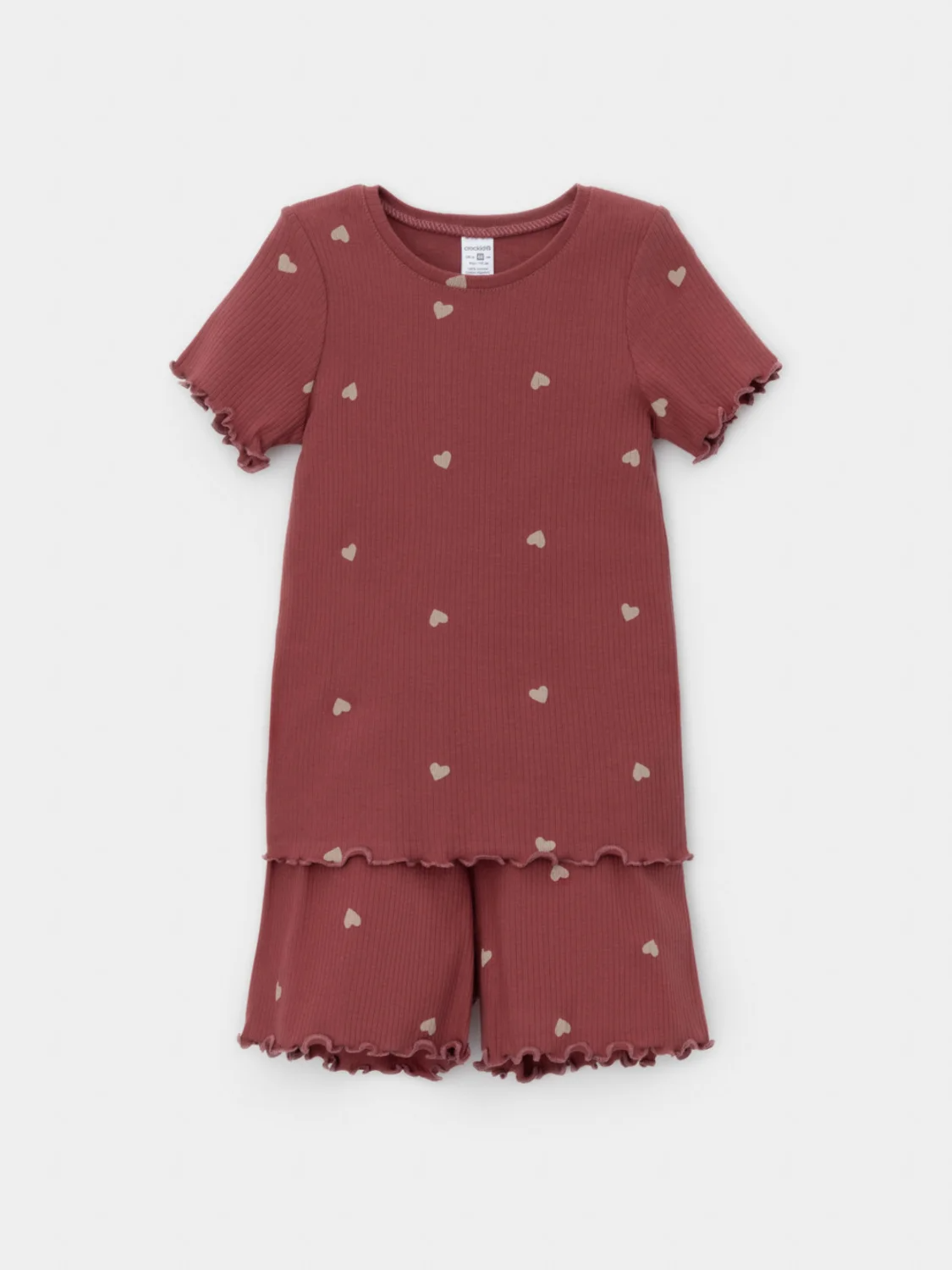 Трикотажная пижама в рубчик из натурального хлопка. Футболка с короткими втачными рукавами и шорты с эластичной резинкой в поясе. Оригинальная набивка выполнена из стойких текстильных гипоаллергенных красителей. Изделие сохраняет цвет и форму после многократных стирок. Все трикотажные полотна производятся в соответствии с нормами швейцарского сертификата ЭкоТекс.