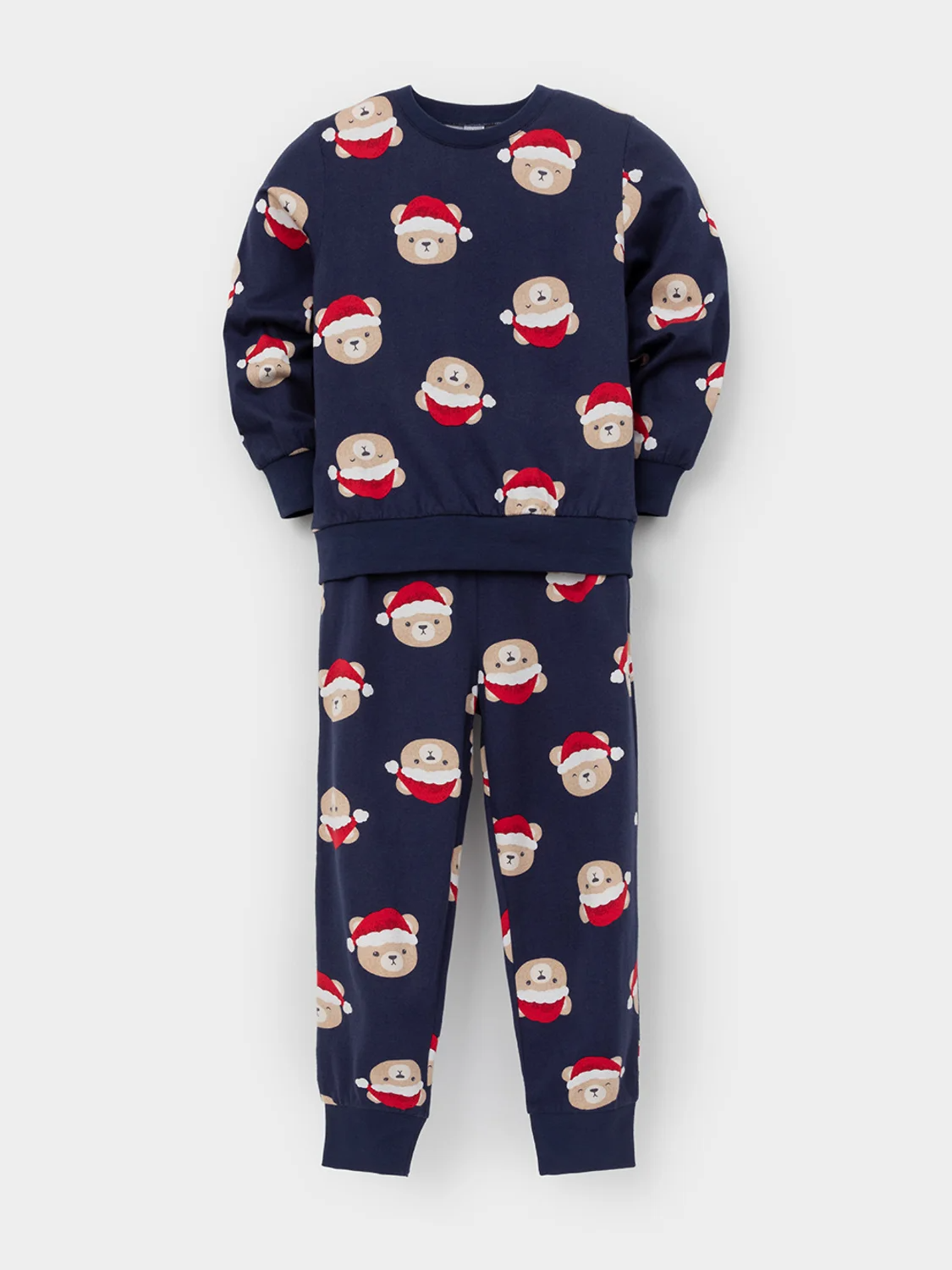 Новогодняя пижама из натурального хлопка. Джемпер с длинными втачными рукавами и брюки с эластичной резинкой в поясе. Мягкие манжеты на рукавах и по низу брюк. Пижама отлично подойдёт для создания уютных домашних образов или в качестве подарка на Новый год и Рождество. Оригинальная набивка выполнена из стойких текстильных гипоаллергенных красителей. Изделие сохраняет цвет и форму после многократных стирок. Все трикотажные полотна производятся в соответствии с нормами швейцарского сертификата ЭкоТекс.