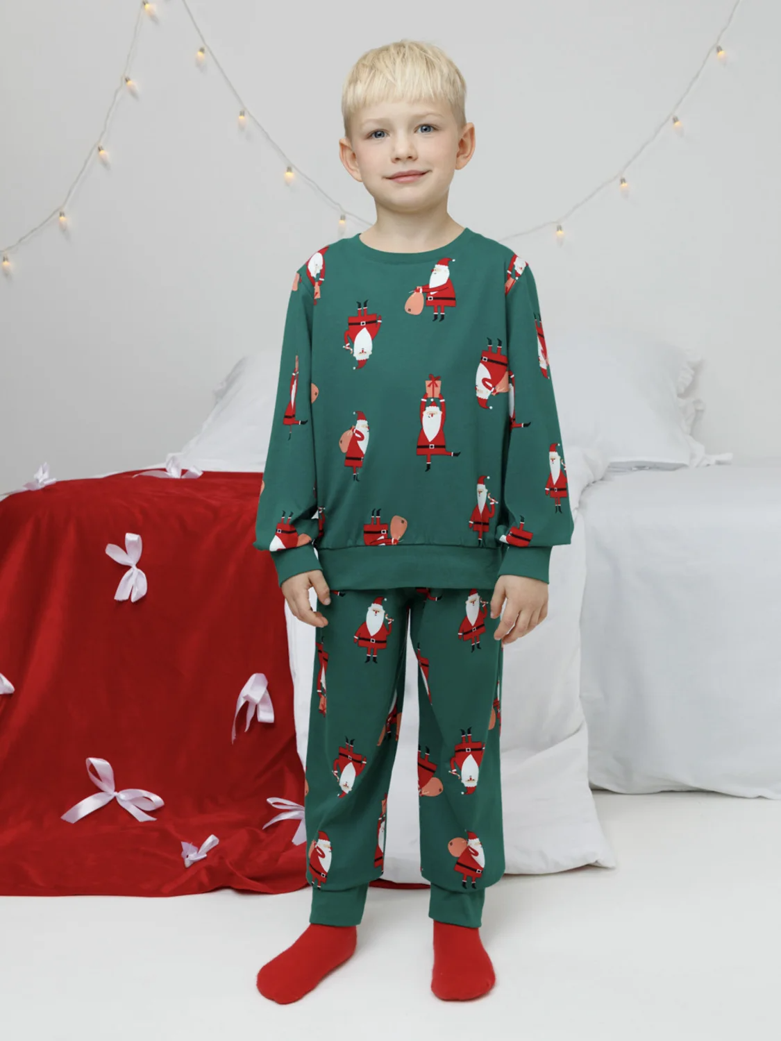 Новогодняя пижама из натурального хлопка. Джемпер с длинными втачными рукавами и брюки с эластичной резинкой в поясе. Мягкие манжеты на рукавах и по низу брюк. Пижама отлично подойдёт для создания уютных домашних образов или в качестве подарка на Новый год и Рождество. Оригинальная набивка выполнена из стойких текстильных гипоаллергенных красителей. Изделие сохраняет цвет и форму после многократных стирок. Все трикотажные полотна производятся в соответствии с нормами швейцарского сертификата ЭкоТекс.