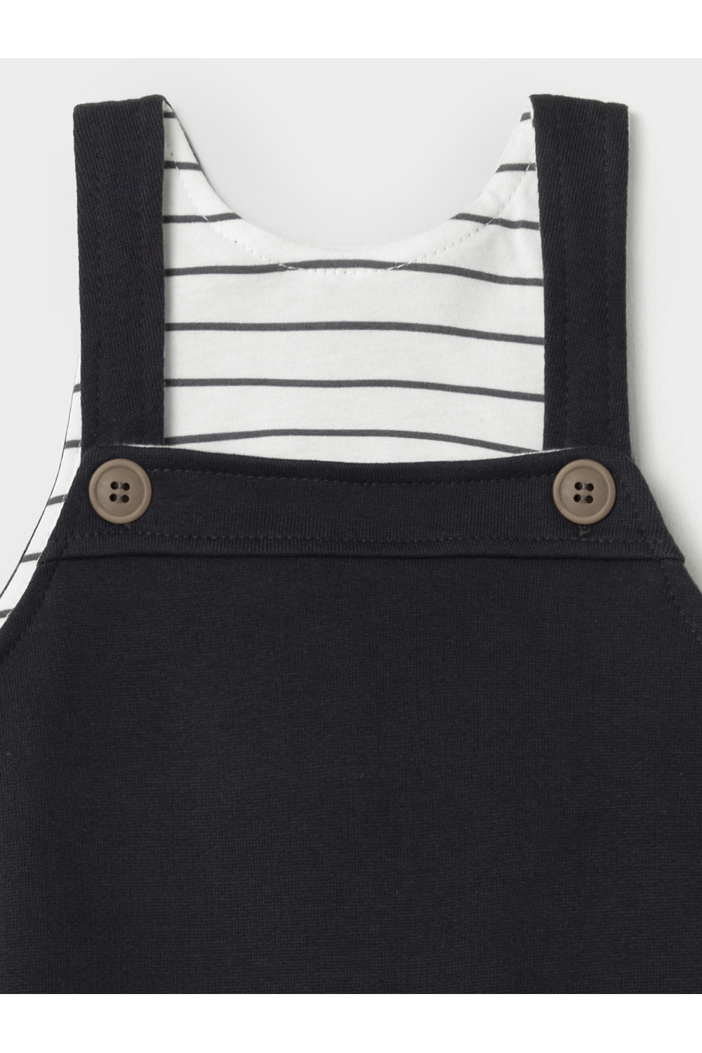 Полукомбинезон для мальчика из мягкого петельчатого футера. Модель с лямками на пуговицах и застёжкой на кнопки по шаговому шву. Низ с отворотами. Изделие сохраняет цвет и форму после многократных стирок. Все трикотажные полотна производятся в соответствии с нормами швейцарского сертификата ЭкоТекс.