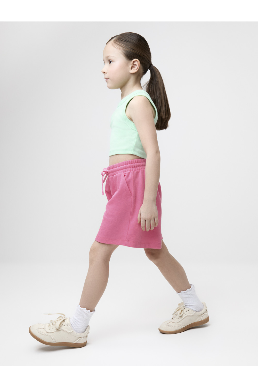Шорты однотонные для девочки с мягким поясом на резинке. Изготовлены из высококачественного трикотажного полотна пике. Изделие сохраняет цвет и форму после многократных стирок. Все трикотажные полотна производятся в соответствии с нормами швейцарского сертификата ЭкоТекс.