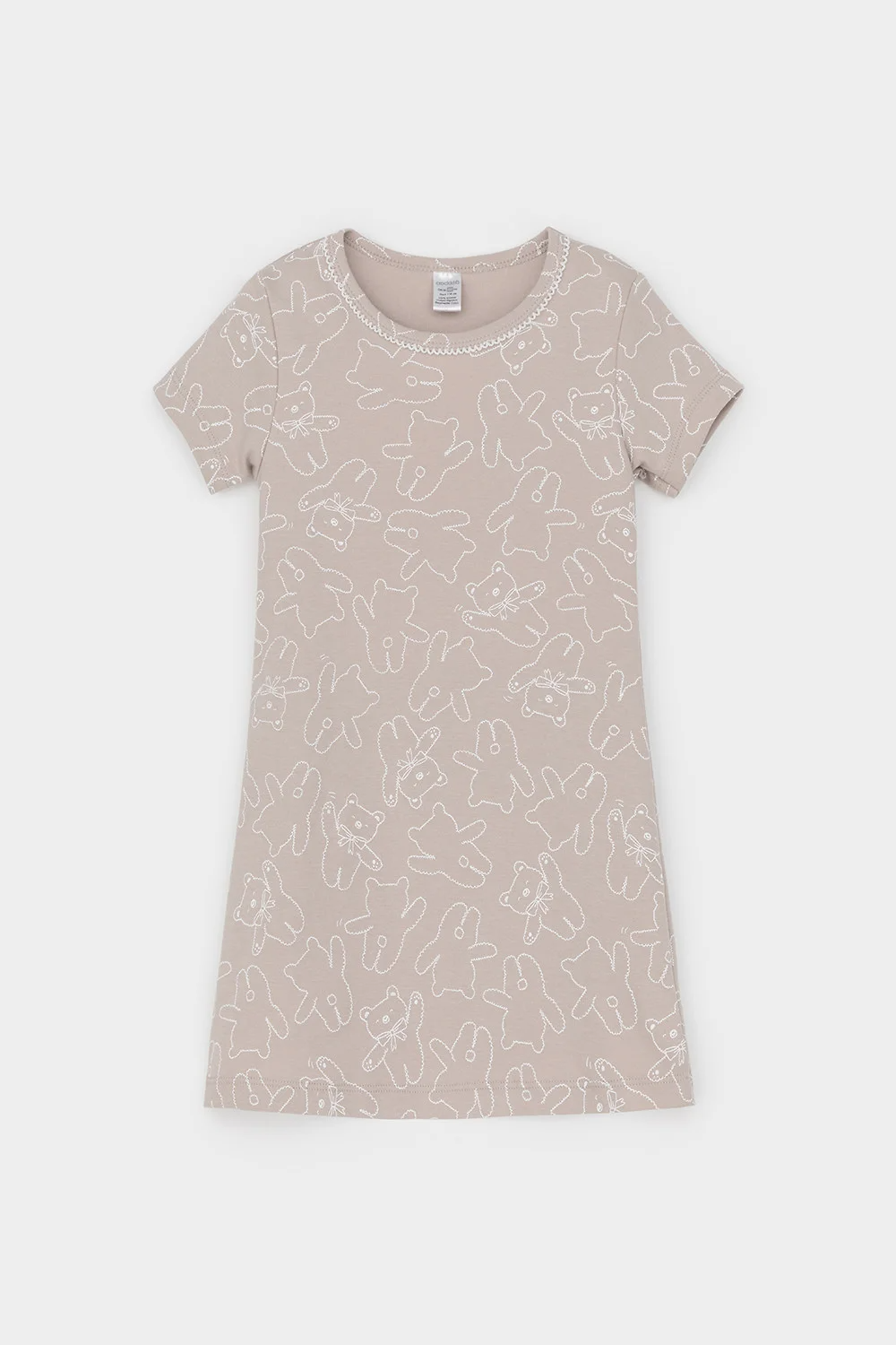 Сорочка из мягкого натурального хлопка с короткими втачными рукавами. Оригинальная набивка выполнена из стойких, гипоаллергенных текстильных красителей. Изделие сохраняет цвет и форму после многократных стирок. Все трикотажные полотна производятся в соответсвии с нормами Швейцарского сертификата ЭкоТекс.