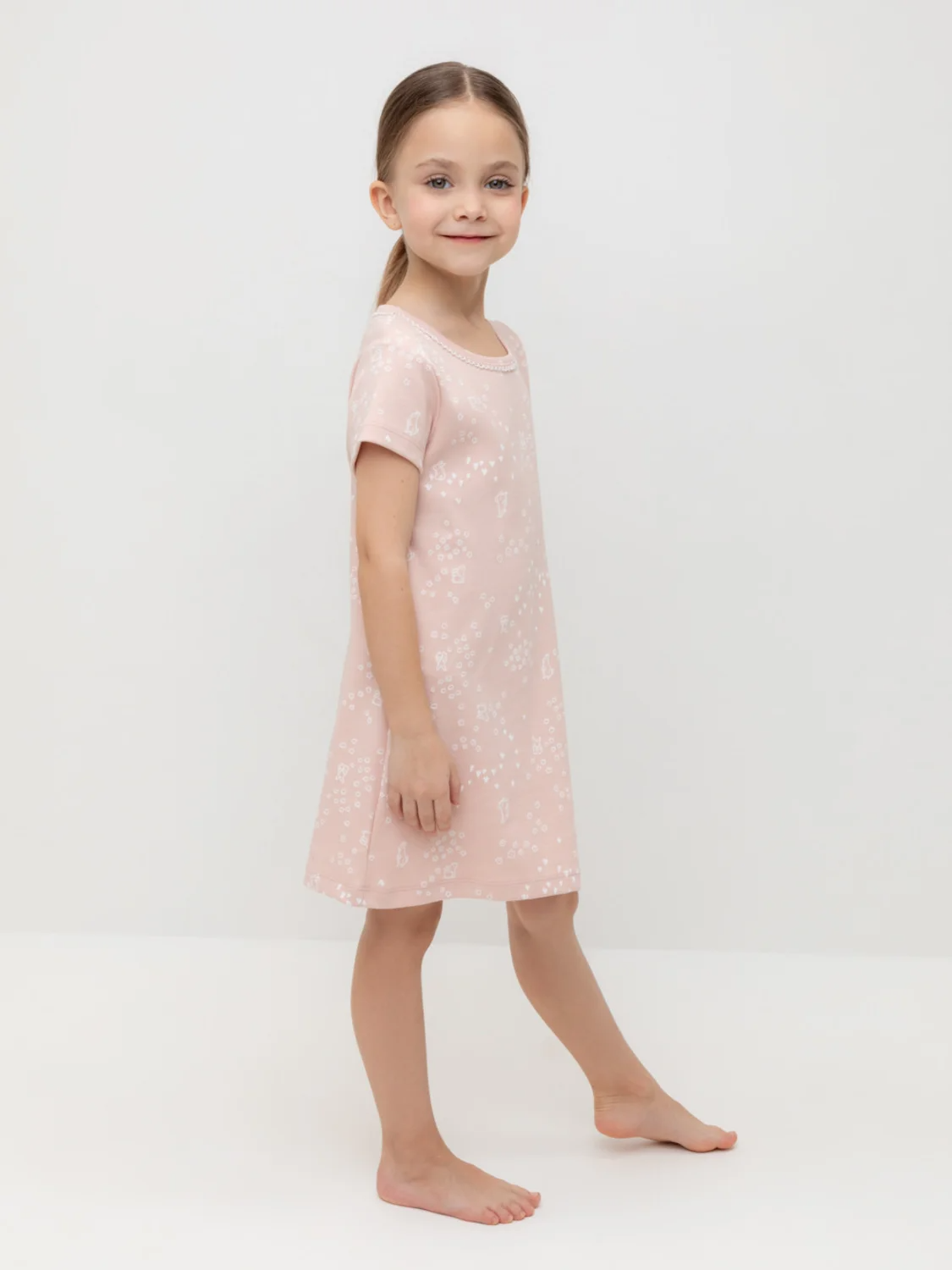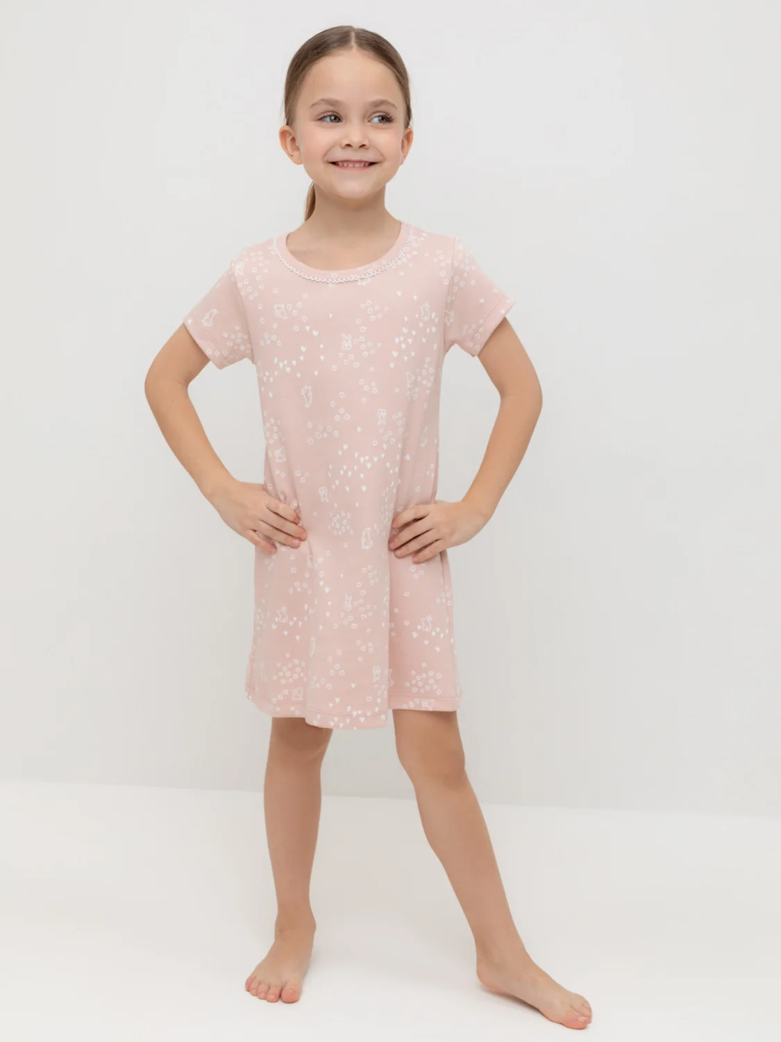 Сорочка из мягкого натурального хлопка с короткими втачными рукавами. Оригинальная набивка выполнена из стойких гипоаллергенных текстильных гипоаллергенных красителей. Изделие сохраняет цвет и форму после многократных стирок. Все трикотажные полотна производятся в соответсвии с нормами швейцарского сертификата ЭкоТекс.
