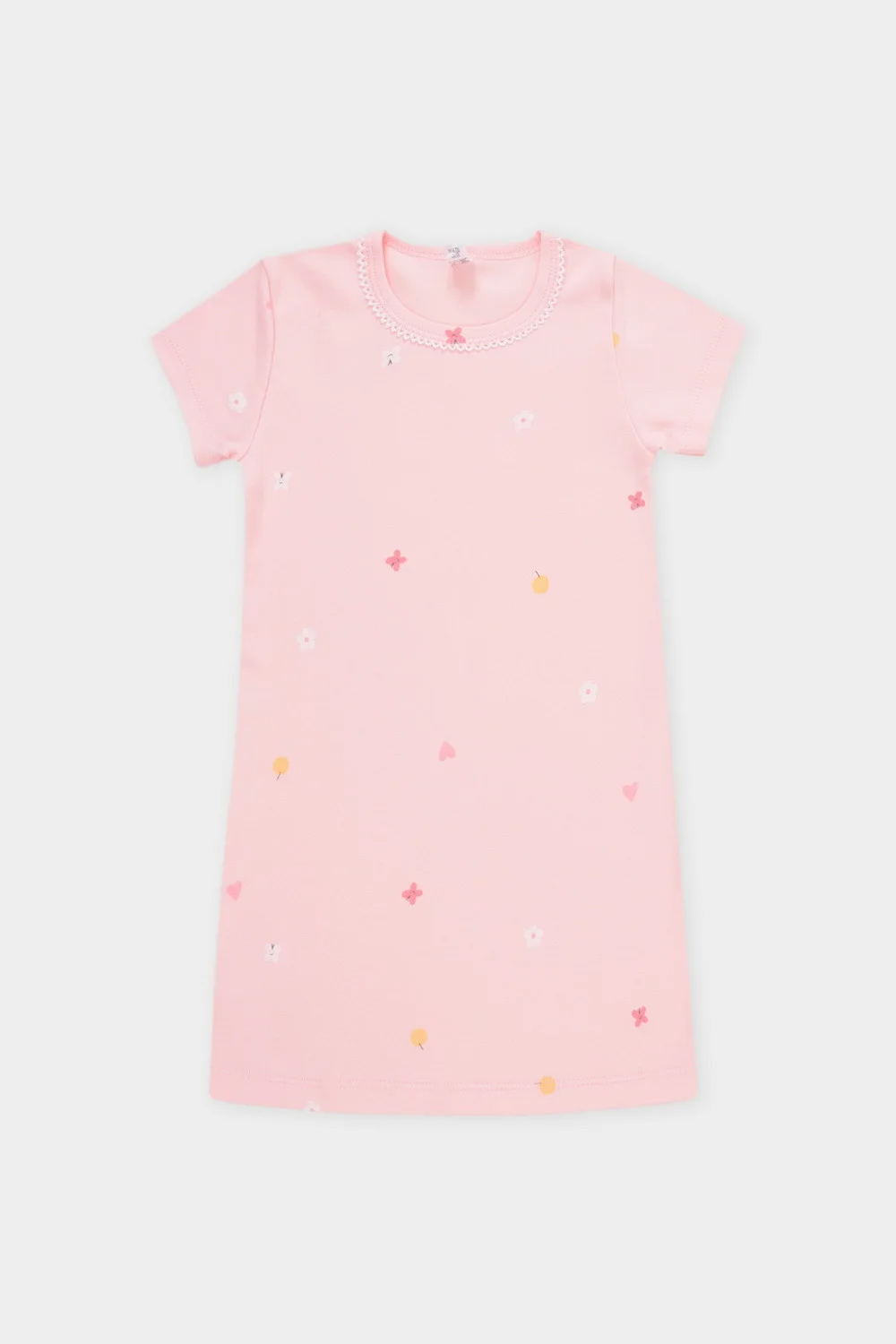 Сорочка из мягкого натурального хлопка с короткими втачными рукавами. Оригинальная набивка выполнена из стойких гипоаллергенных текстильных гипоаллергенных красителей. Изделие сохраняет цвет и форму после многократных стирок. Все трикотажные полотна производятся в соответсвии с нормами швейцарского сертификата ЭкоТекс.