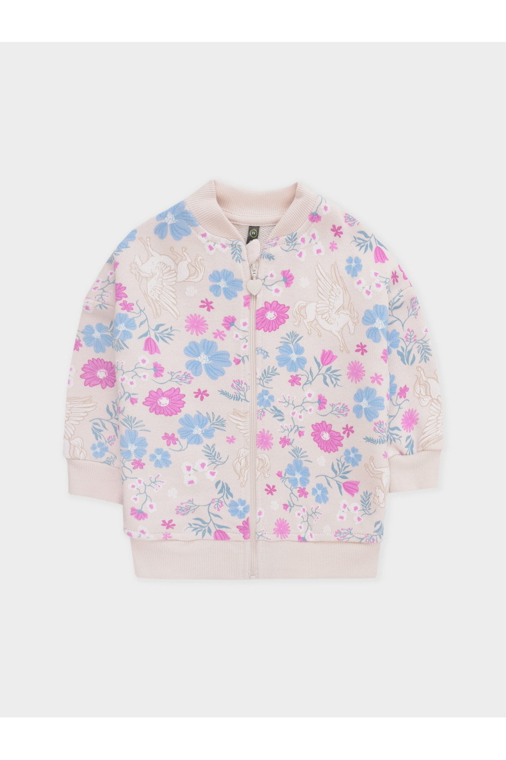 Трикотажная куртка-бомбер для девочки. Изготовлена из мягкого футера петли трёхнитки. Застёгивается на молнию с мягкой защитой шеи и подбородка. По бокам два кармана. Воротничок, манжеты и пояс выполнены из эластичного трикотажа в рубчик. Изделие сохраняет цвет и форму после многократных стирок. Все трикотажные полотна производятся в соответствии с нормами швейцарского сертификата ЭкоТекс.