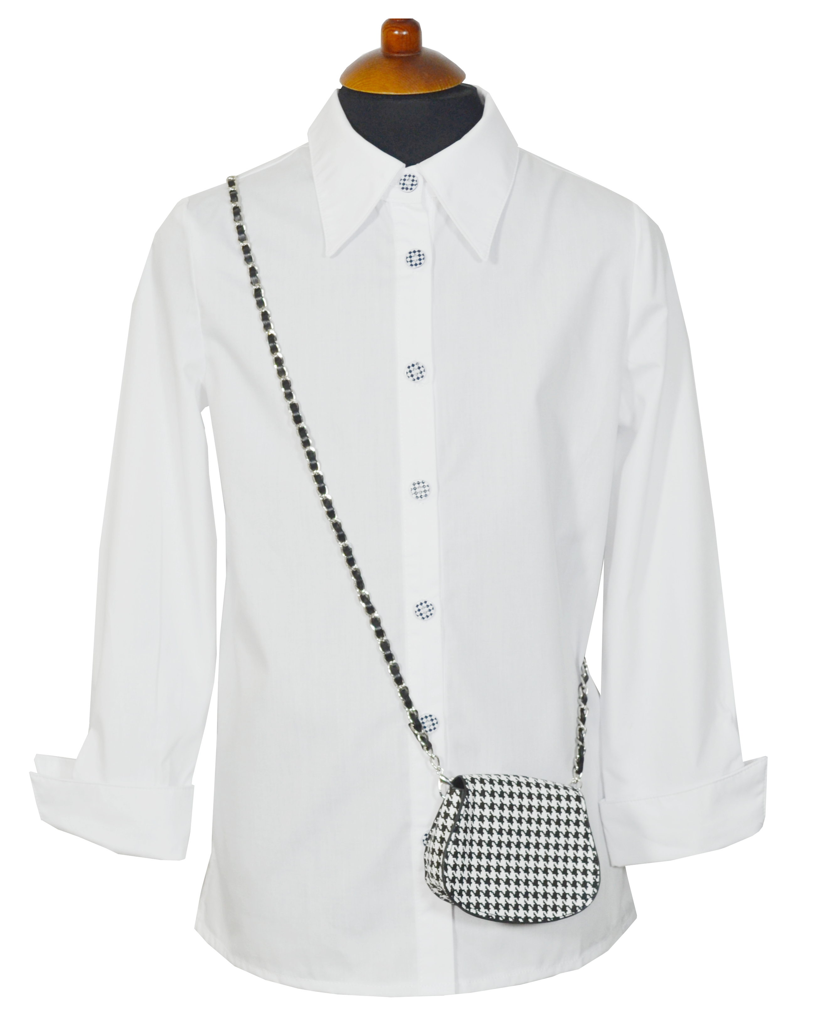 Блузка с длинным рукавом из хлопковой рубашечной ткани. Рукав с подворотом. По спинке кокетка от которой идет защип ткани, по типу мужских рубашек. Застежка на пуговицы. Пошив безупречный.Сумка в комплекте.