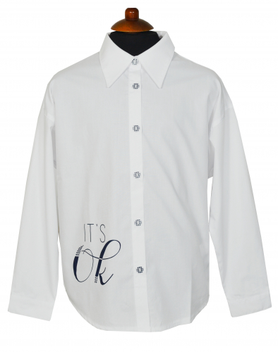 Трикотажная блузка на замке с отложным воротником.Дополнена прорезиненной наклейкой. Застежка на замок. Ткань не тонкая, не просвечивает, с добавлением эластана. Спинка изделия без особенностей. По одному рукаву нашит шеврон.