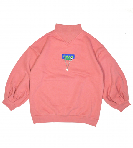 Трикотажная блузка на замке с отложным воротником. Украшением блузки служит нашитый шеврон.  Застежка на замок. Ткань не тонкая, не просвечивает, с добавлением эластана, высокого качества. Спинка изделия без особенностей.