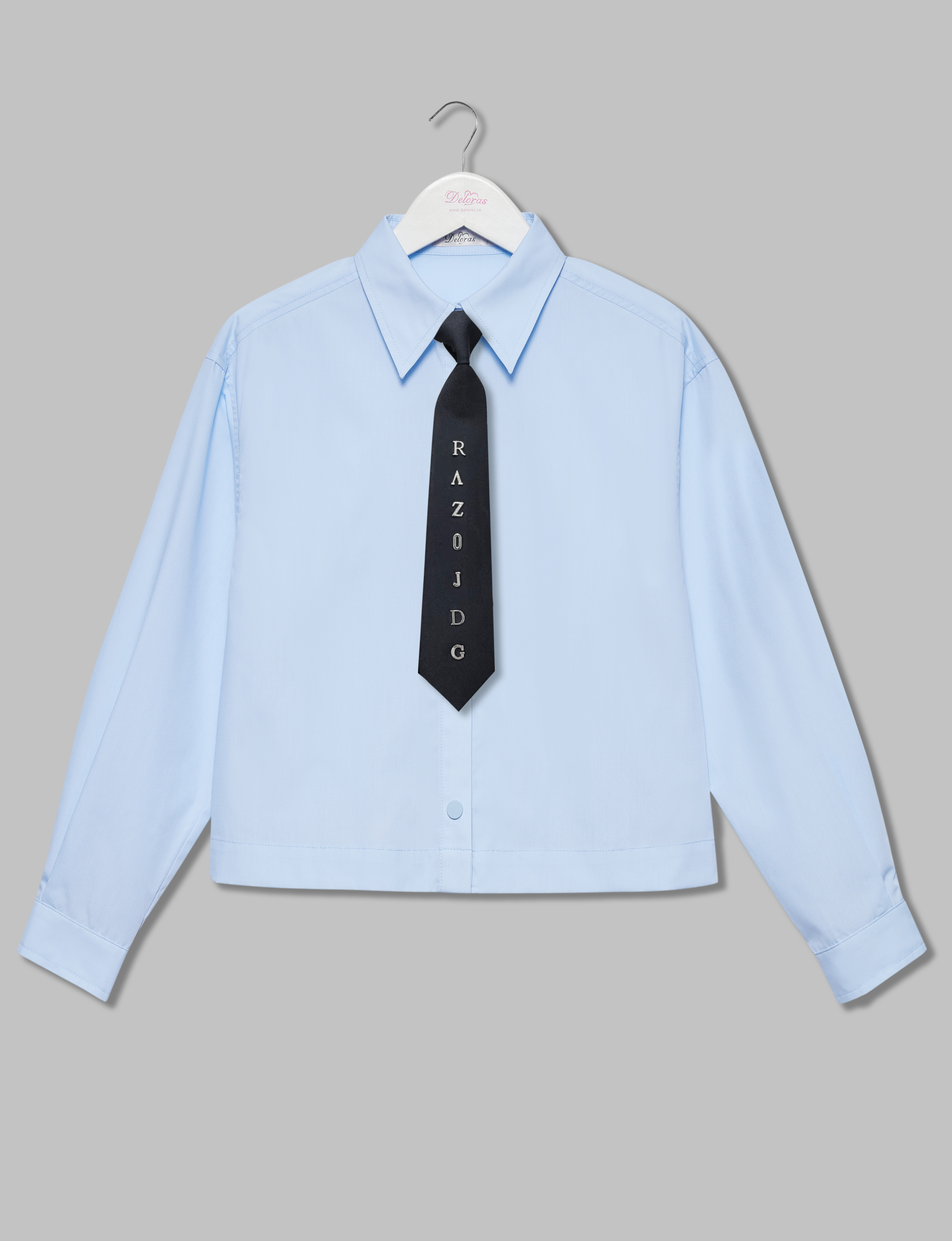 Блузка для девочки с длинным рукавом из хлопковой ткани свободного кроя. Отложной воротник. Застежка на кнопки. Спущенное плечо.  Накладной карман.