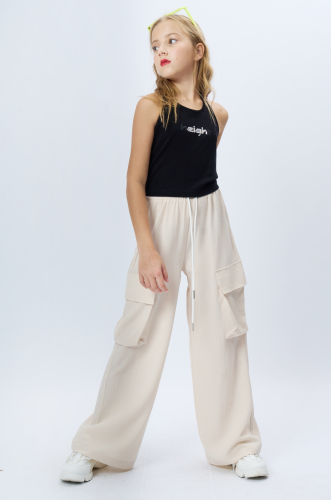 Кюлоты для девочки. Пояс на резинке. Накладные карманы. Летний вариант.
