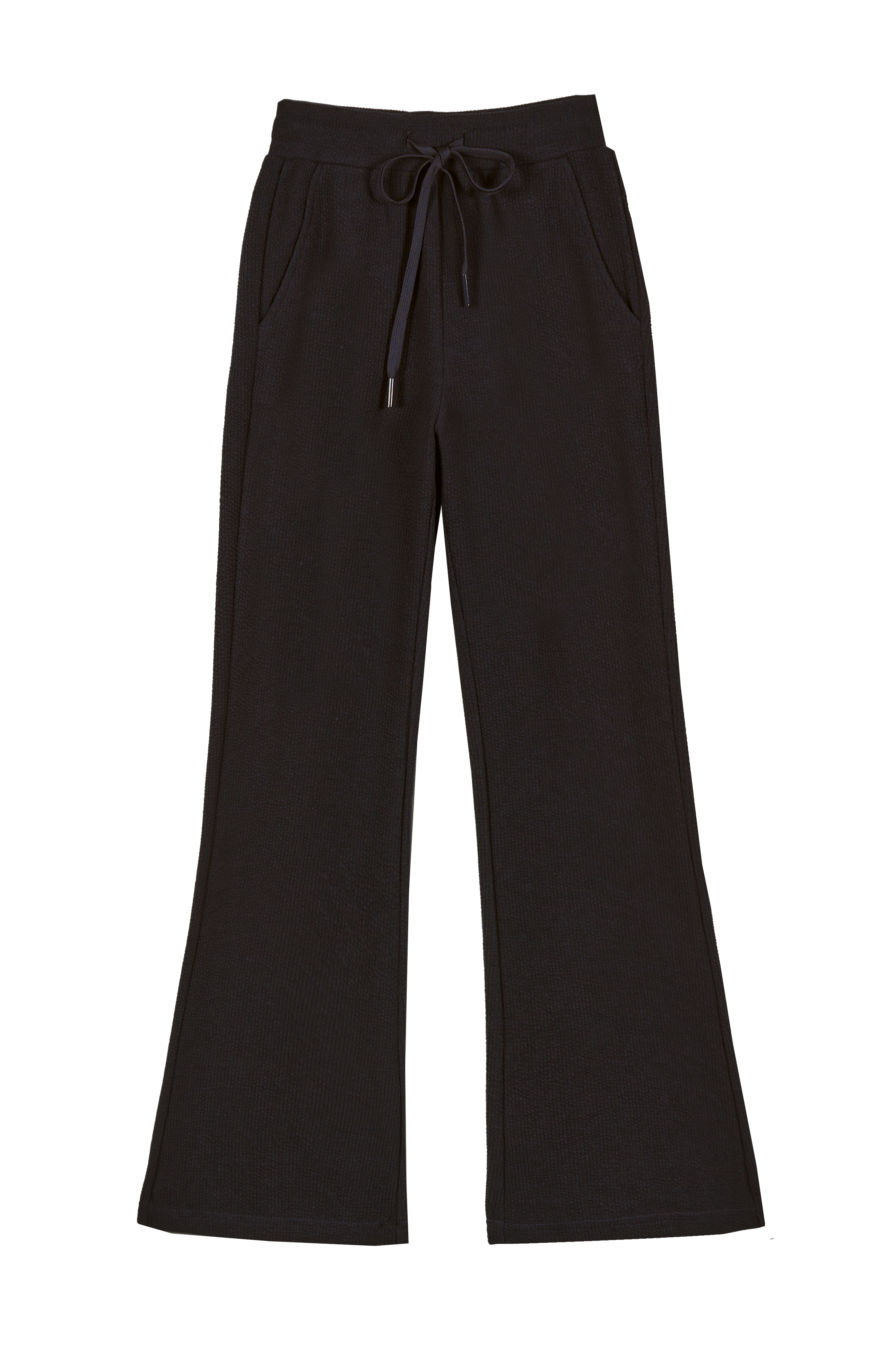 Брюки-клеш  из трикотажной ткани.  Пояс на резинке. Функциональные карманы. Пошив безупречный. Ткань плотная, хорошо тянется.