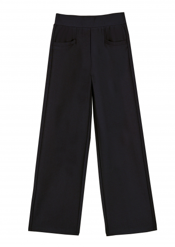 Кюлоты из костюмной ткани.  Пояс на резинке, регулируется шнурком. Прорезные карманы. Пошив безупречный.