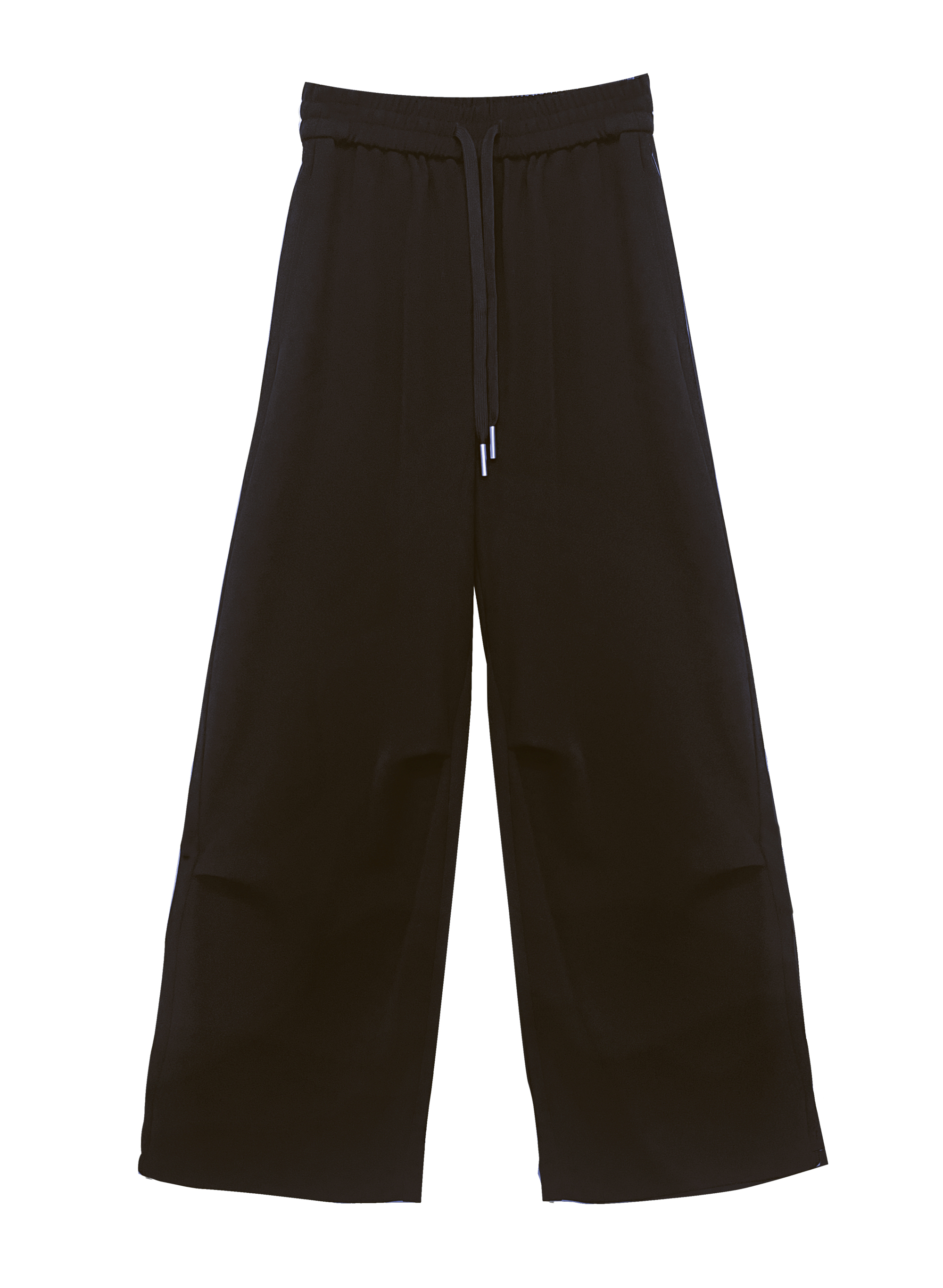Прямые брюки из премиальной вискозы.  Пояс на резинке, дополнен шнурком. Функциональные карманы. Пошив безупречный. Ткань шифон.