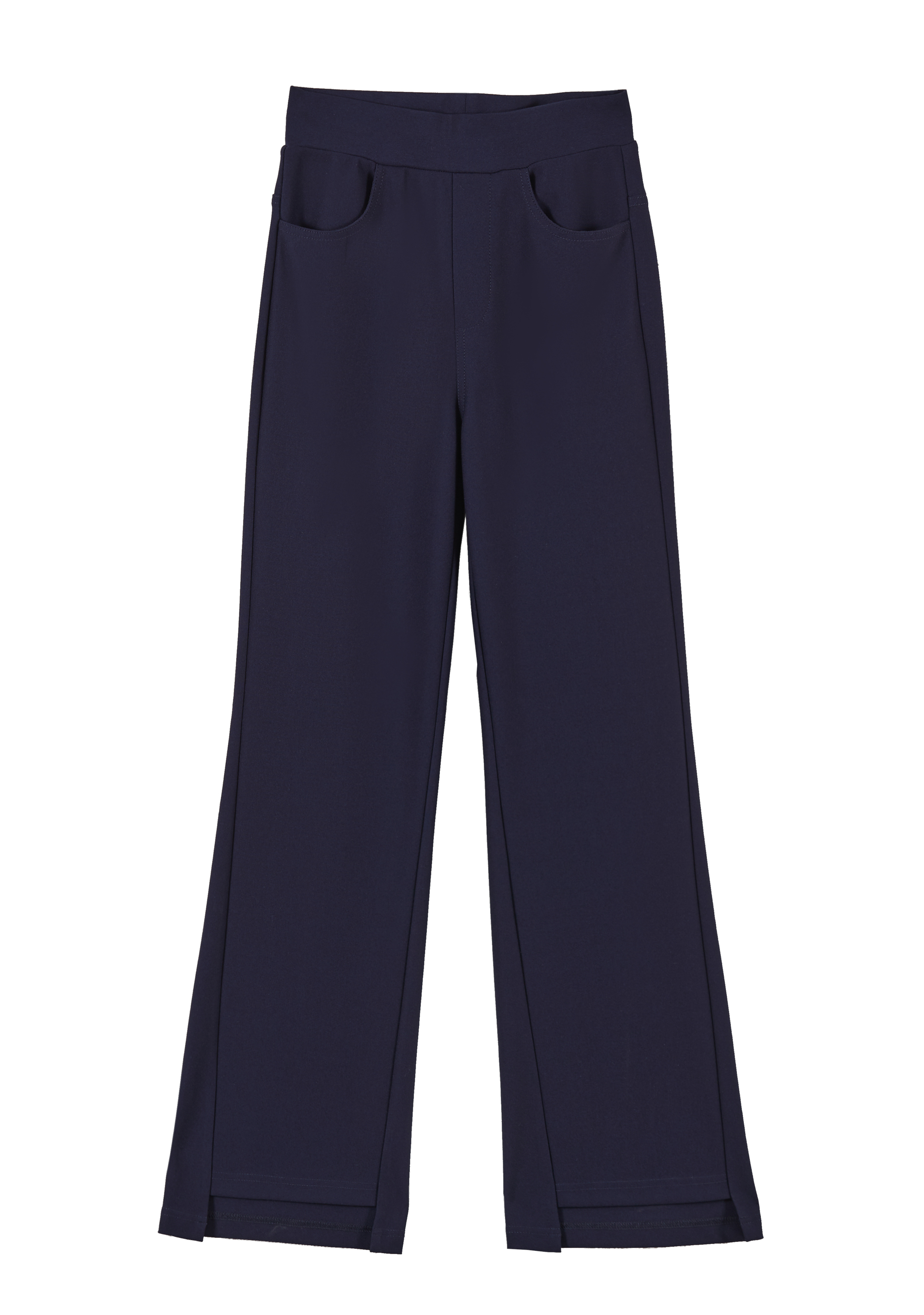 Брюки-клеш  из трикотажной ткани высокого качества с добавлением эластина.  Пояс на резинке. Функциональные карманы. По низу заднее полотно длиннее. Пошив безупречный.