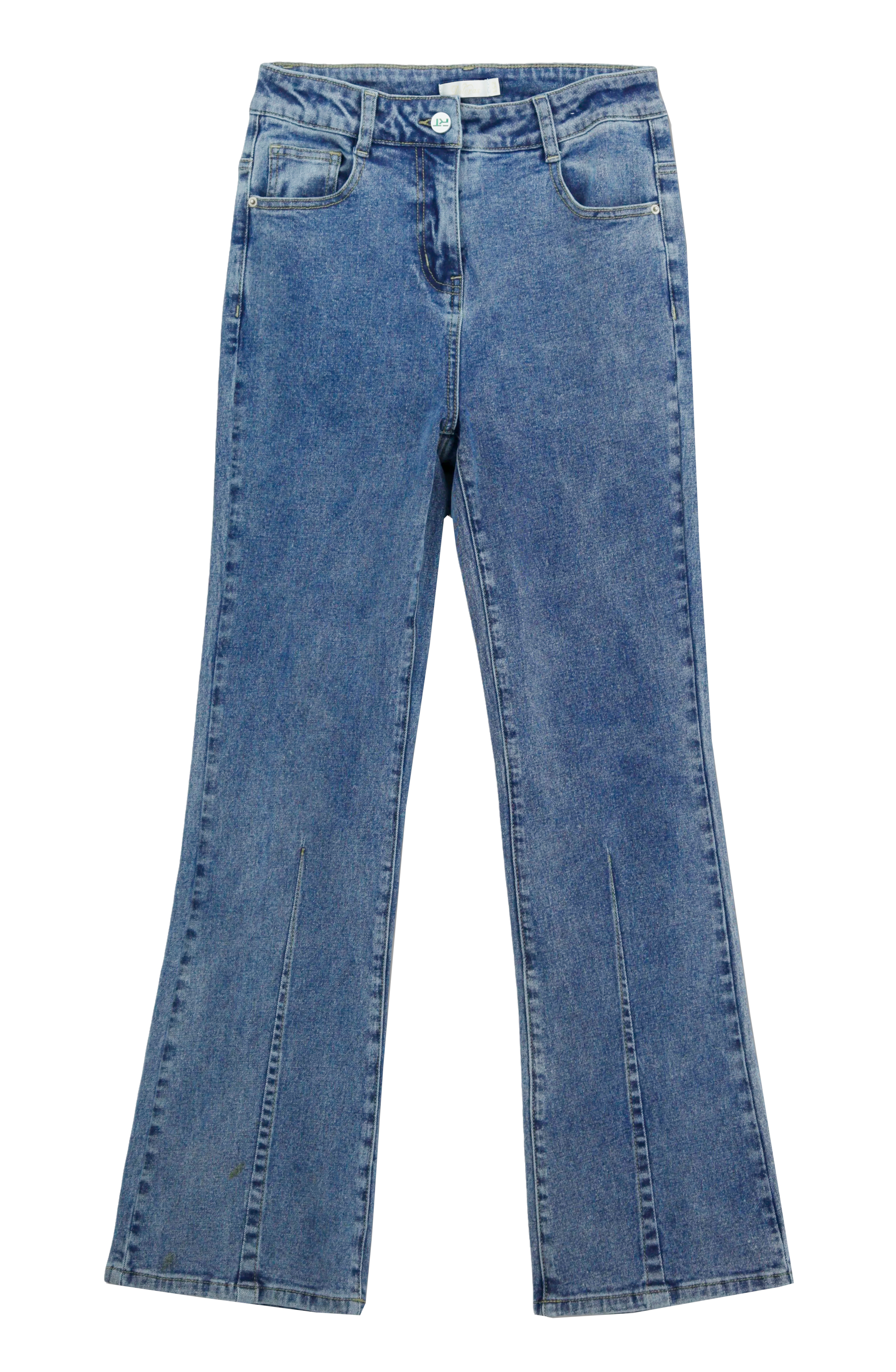 Джинсы для девочки расклешенные к низу. Ширина пояса регулируется потайной резинкой. Функциональные карманы.