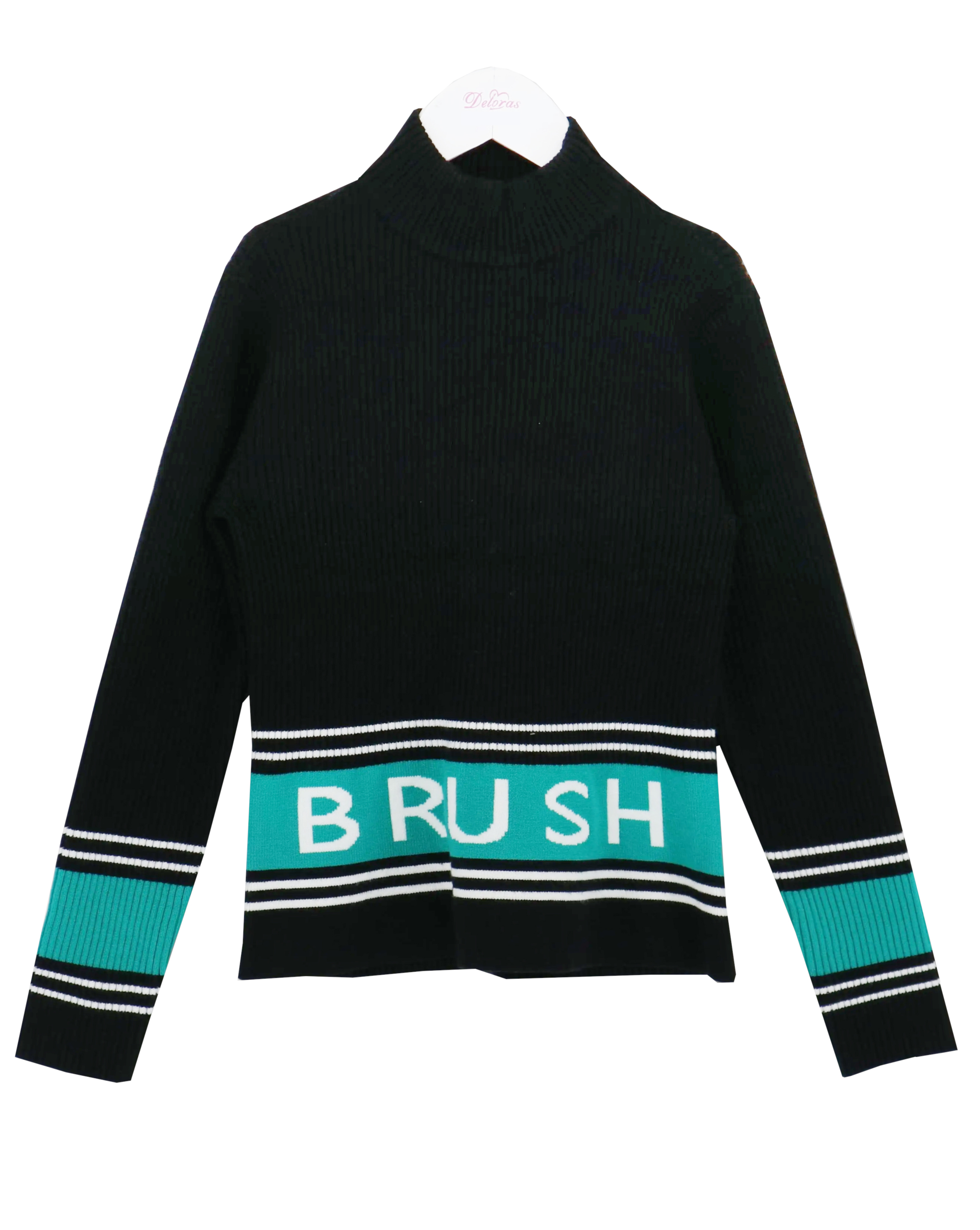 Джемпер для девочки из вискозной ткани под горло. Вывязаны детали контрастные по цвету.  Спинка без особенностей. Качество изделия очень высокое.