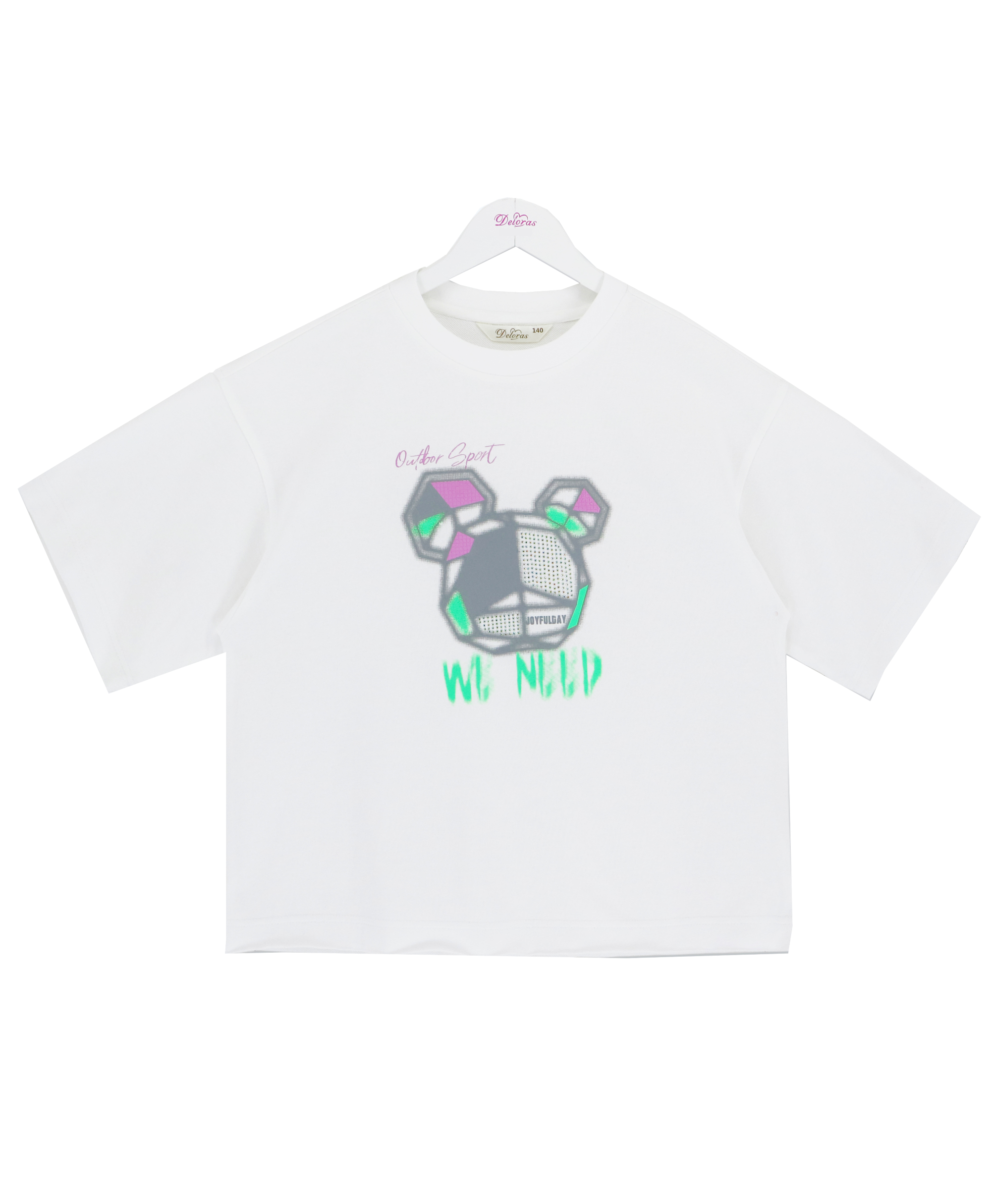 Футболка  для девочки свободного кроя. Выполнена из качественного хлопкового полотна. Дополнена принтом.