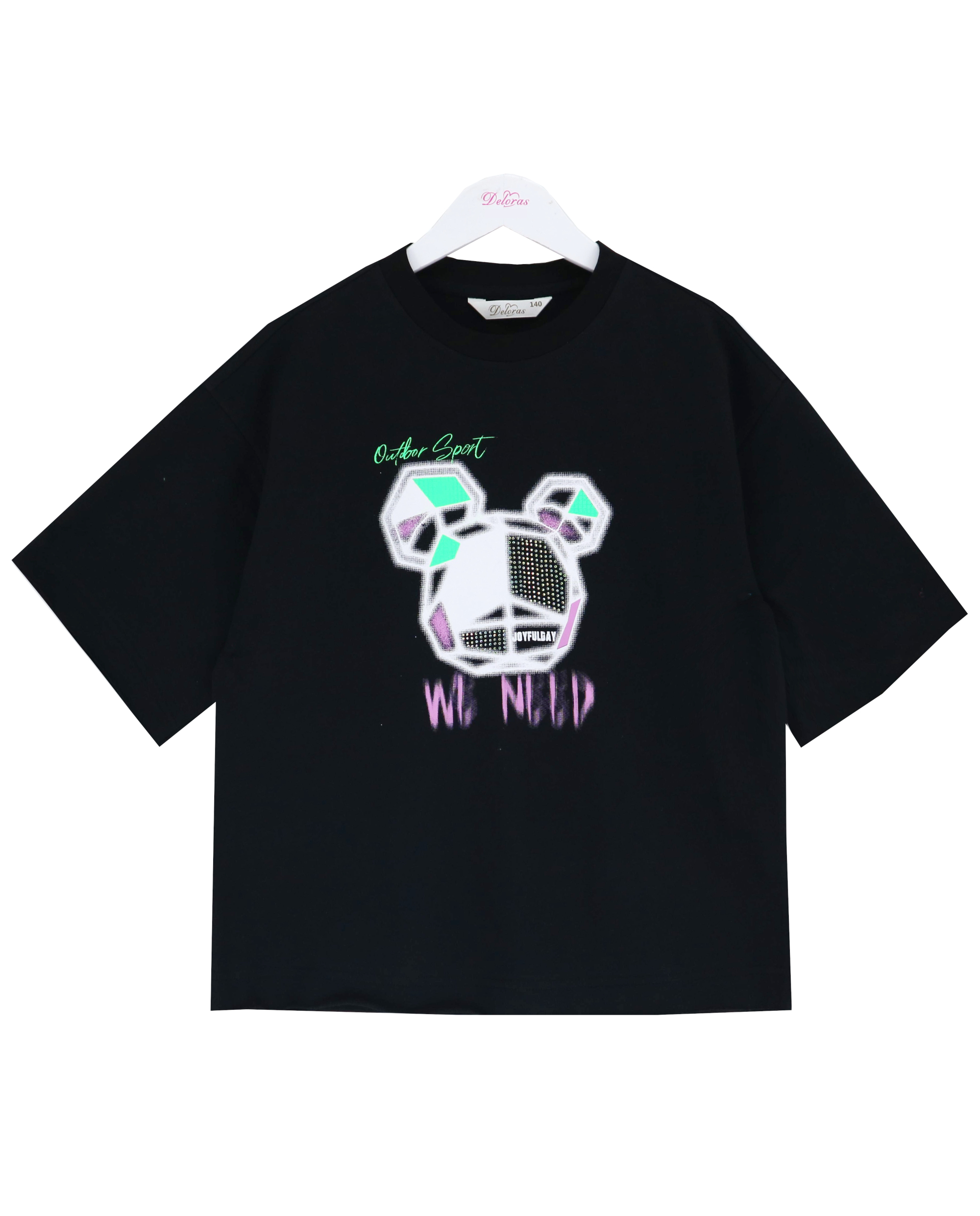 Футболка  для девочки свободного кроя. Выполнена из качественного хлопкового полотна. Дополнена принтом.