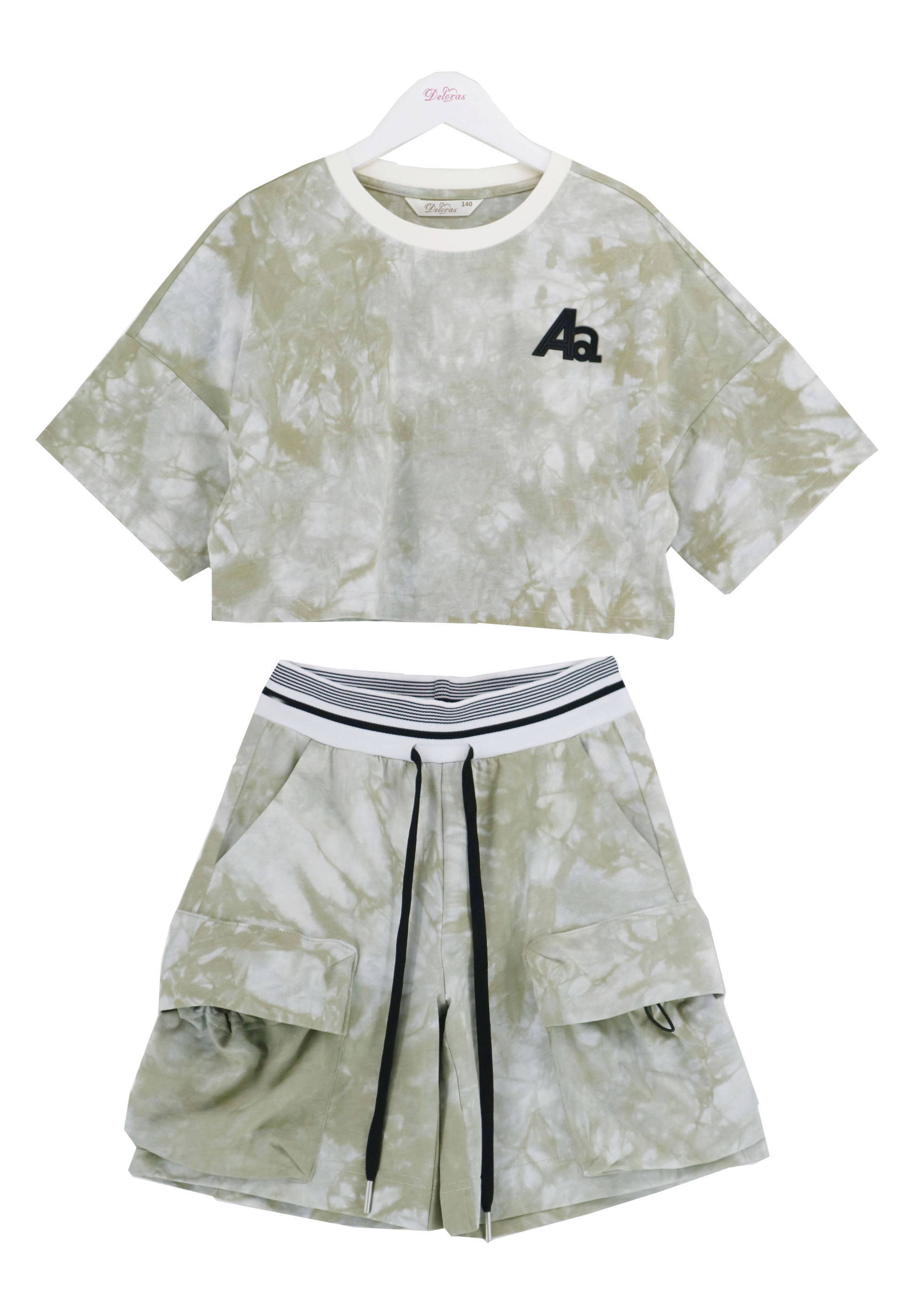 Летний комплект для девочки. Футболка свободного кроя, дополнена шевроном.  Шорты на поясе резинке. Карманы функциональные.