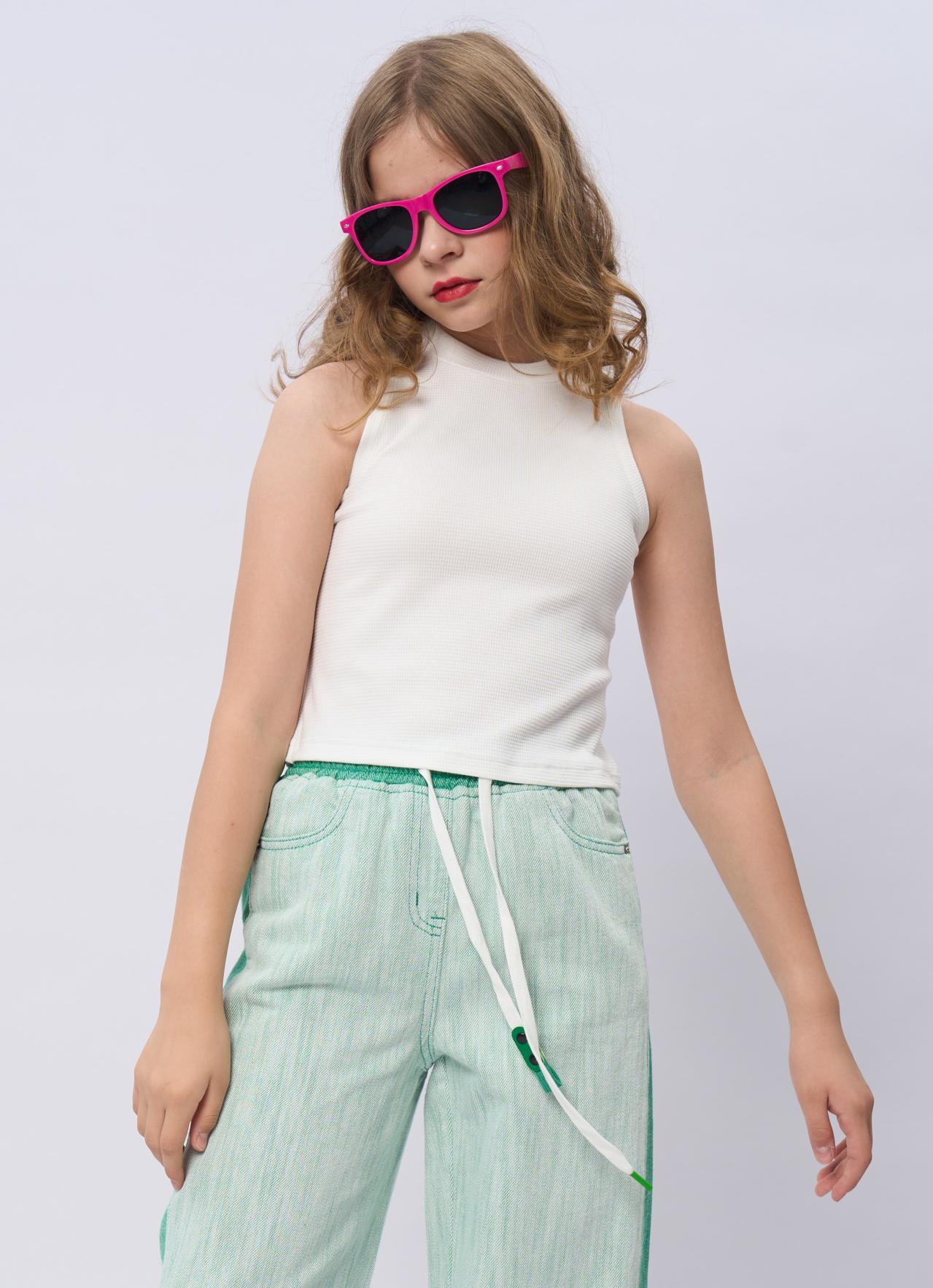 Майка  для девочки. Выполнена из качественного хлопкового полотна с добавлением эластана. Базовая вещь в летнем гардеробе.