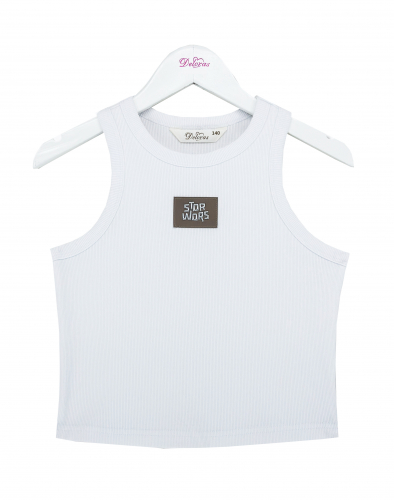 Майка  для девочки. Выполнена из качественного хлопкового полотна с добавлением эластана. Дополнена шеврон.