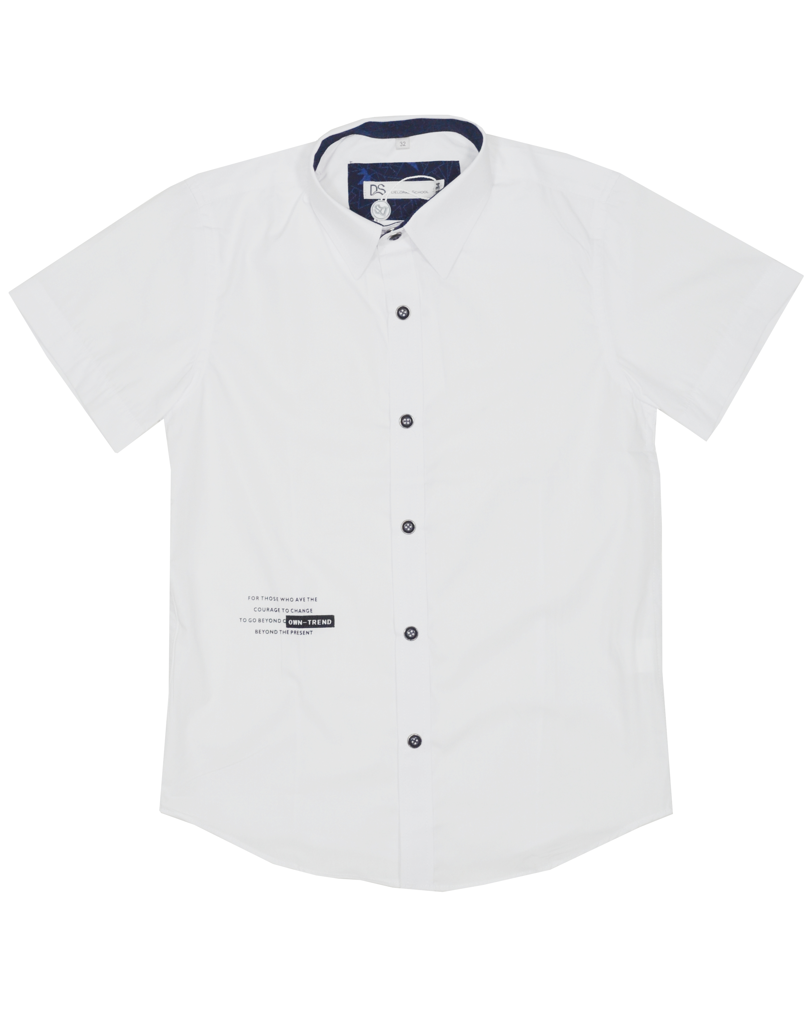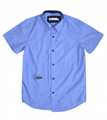 Классическая рубашка для мальчика с коротким рукавом. Застежка на кнопки, по виду похожие на пуговицы. Приталенная, по спинке вытачки. Подворотник контрастный по цвету. Материал высокого качества, гладкий и плотный, не просвечивает.