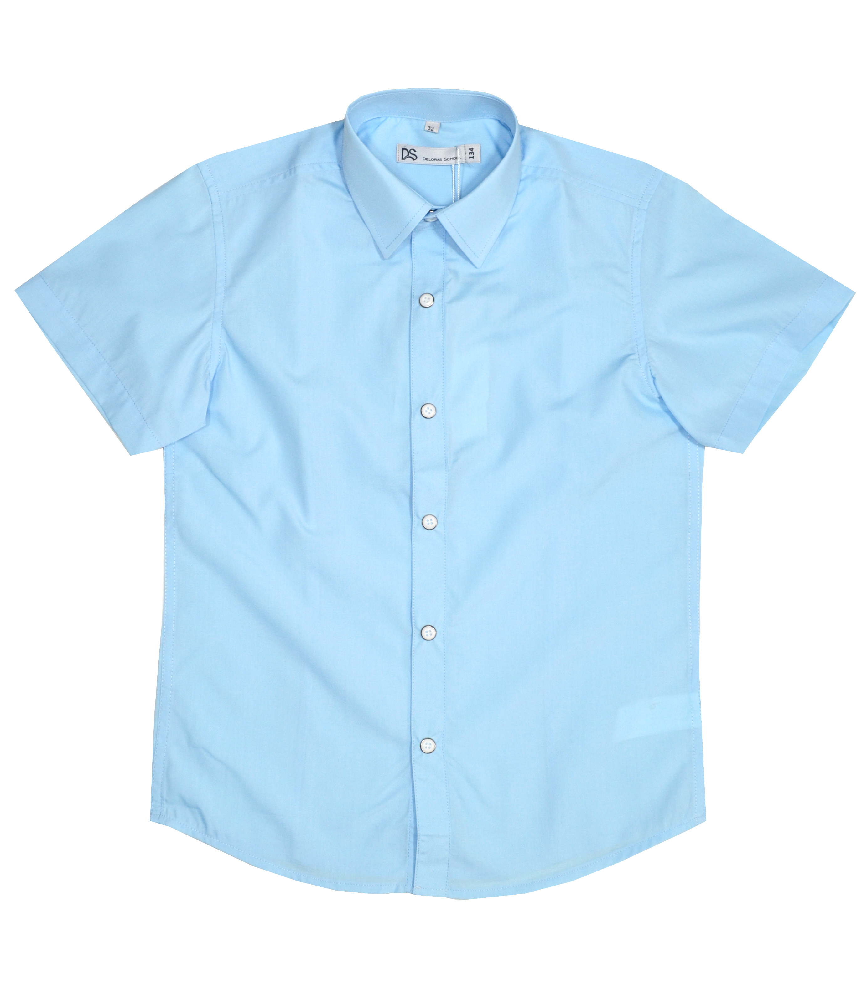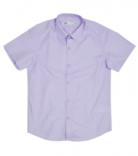 Классическая рубашка для мальчика с коротким рукавом. Застежка на кнопки, по виду похожие на пуговицы. По спинке вытачки. Материал высокого качества, гладкий и плотный, не просвечивает.