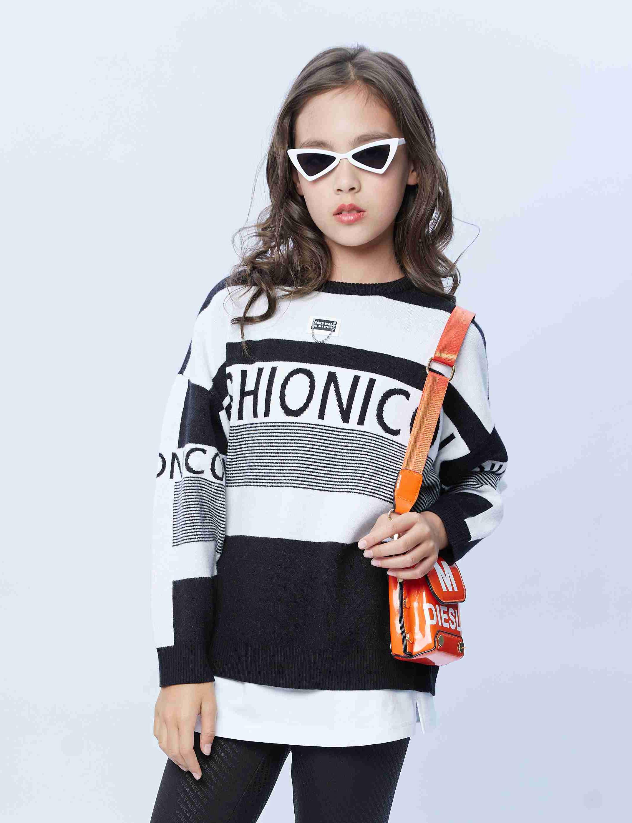 Джемпер вязанный для девочки по типу Oversize.  Допонен шевроном. В размер.