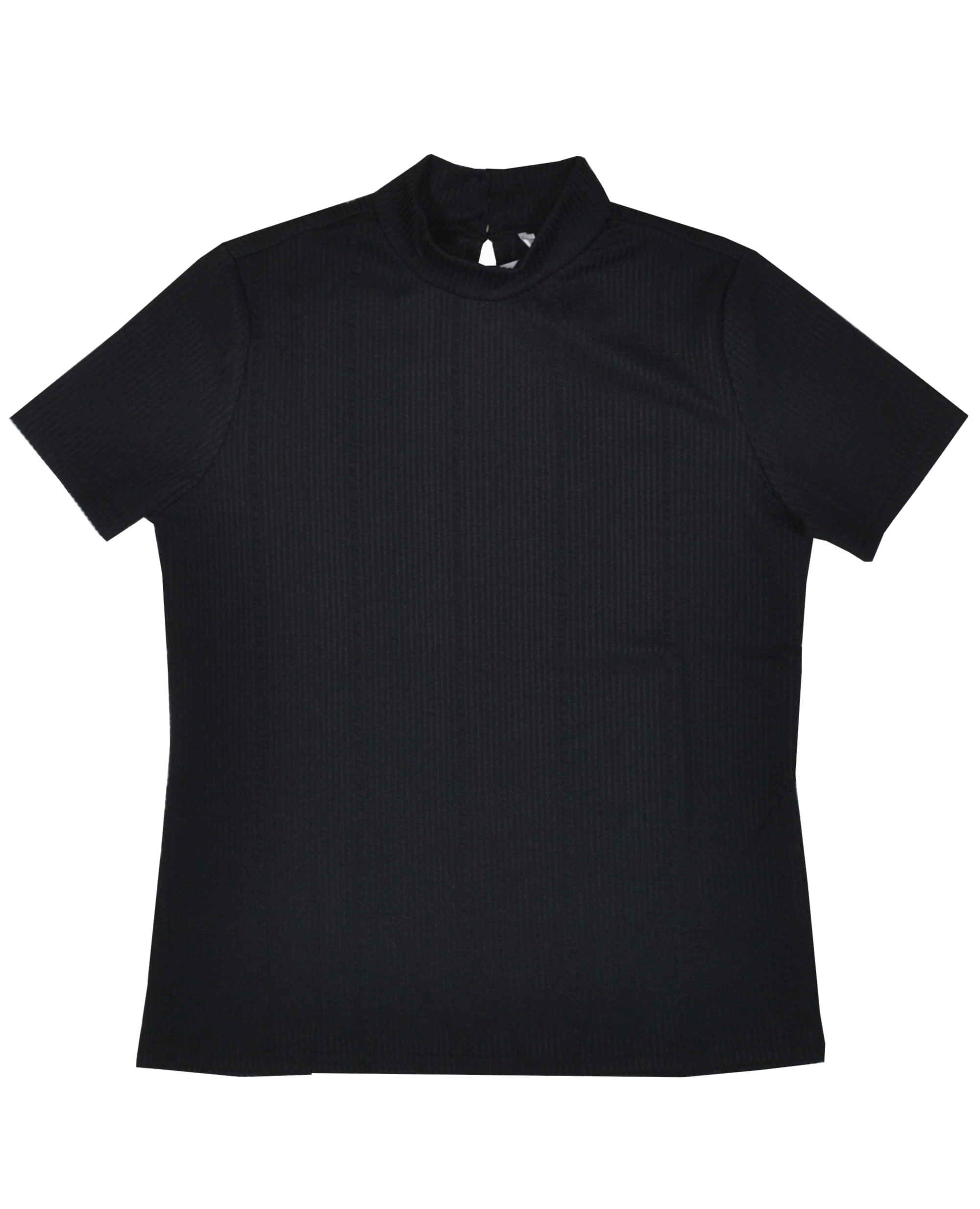Водолазка с коротким рукавом из плотного приятного к телу трикотажа. Воротник -стойка. Застежка капелька на пуговицу по воротнику. Вискозное полотно со структурой в полочку.